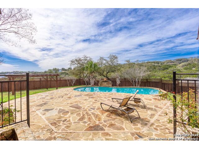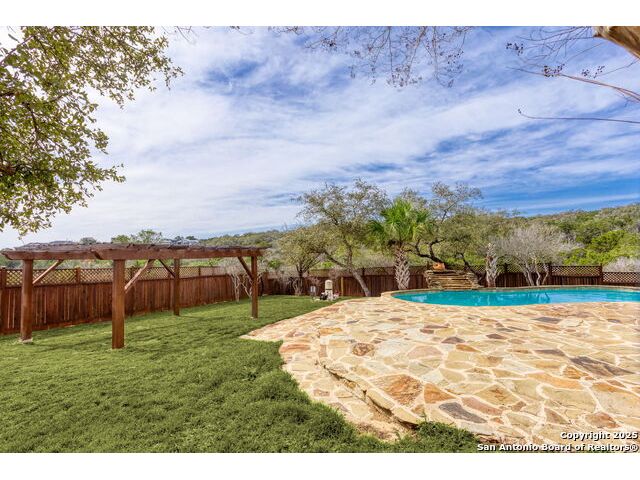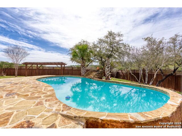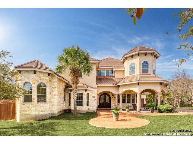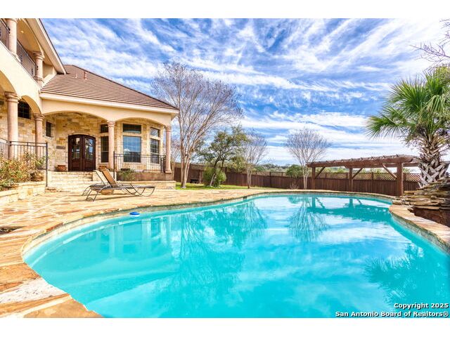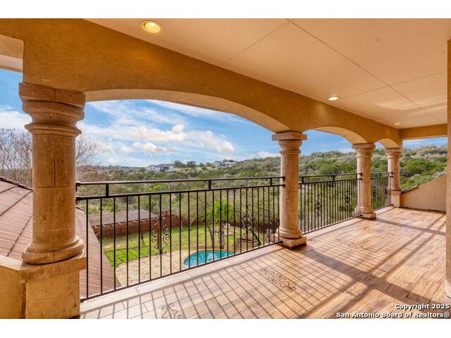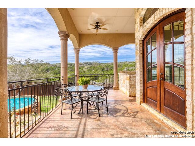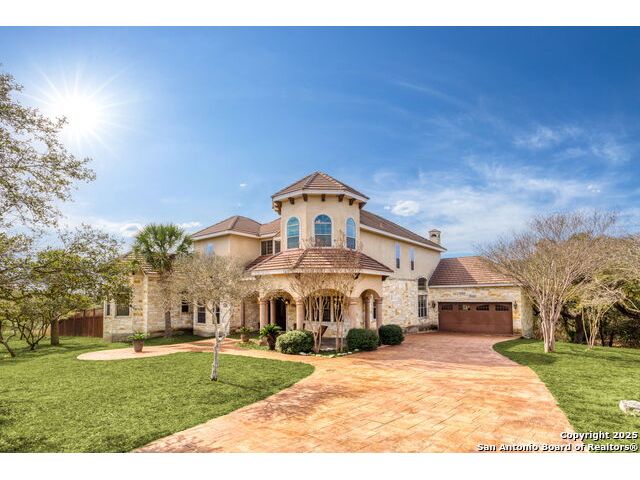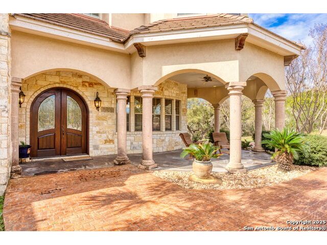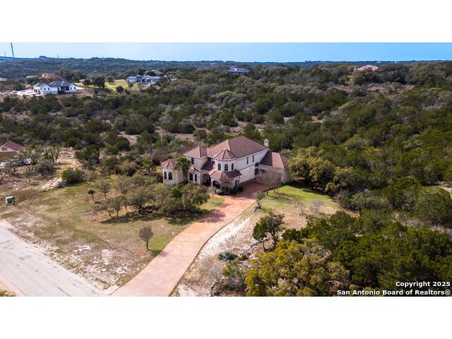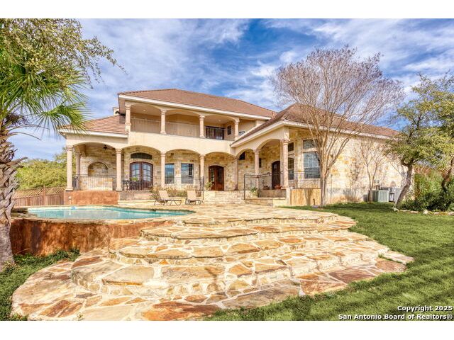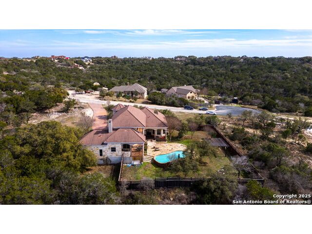 Experience country living at its finest in this custom-built, luxurious 5-bedroom, 3.5-bathroom home in the desirable Laurel Canyon Ranch in Mico. This stunning residence features exquisite details, A beautifully designed driveway leads to a striking stone exterior, accented by handcrafted Cantera columns reinforced with steel and concrete.Designed with superior craftsmanship, this home features 2x6 exterior walls for enhanced structural integrity, supporting the durable concrete title roof-a rare feature that sets this home apart. Inside, soaring ceilings create a grand atmosphere-21-ft inverted pan ceiling in the living room, a stunning 14-ft copper ceiling in the primary suite, and 9-ft ceilings in all other bedrooms. The home boasts a grand spiral wood staircase, solid wood 8-ft doors, 6-inch baseboards, a mix of hand-textured and custom-painted walls, and rich wood flooring, all adding to its timeless elegance. Enjoy your private oasis with a pool, covered balcony, outdoor kitchen, and set on over 2 acres with breathtaking Hill Country views. This is a opportunity to own a one-of-a-kind Hill Country retreat with exceptional design and structural quality.