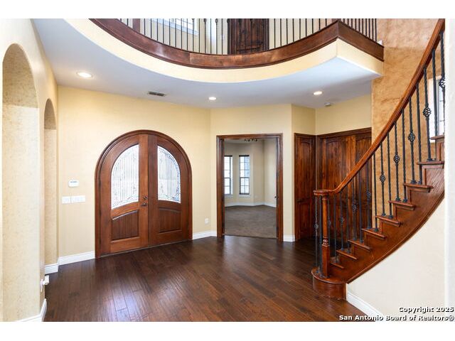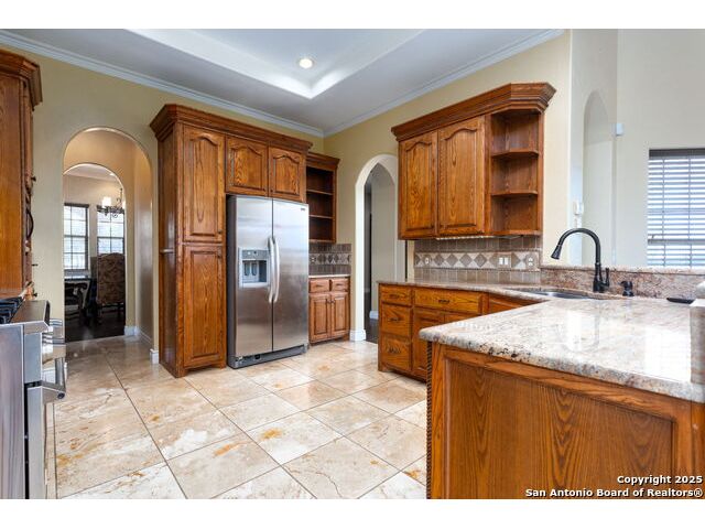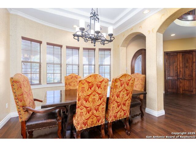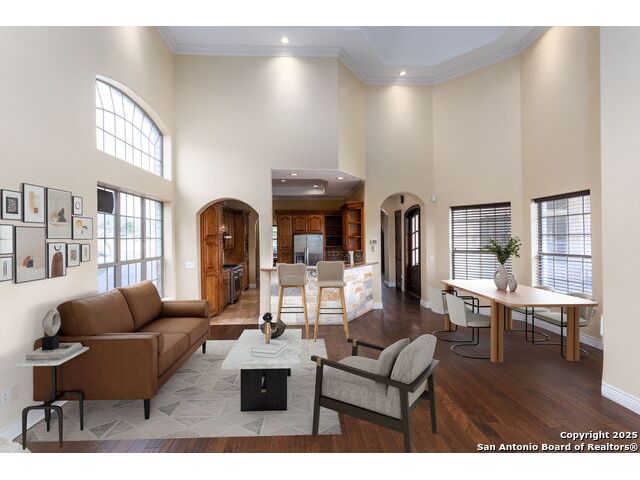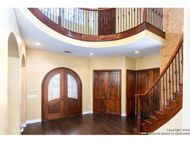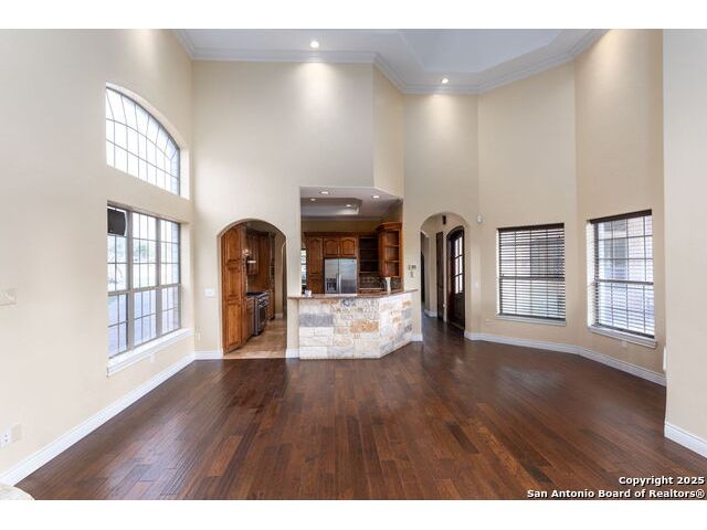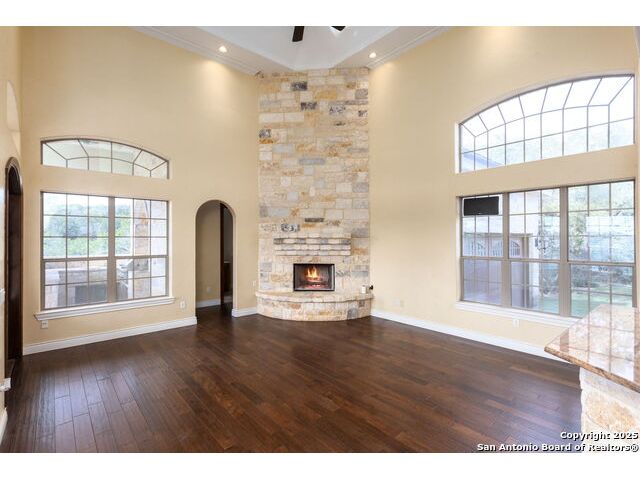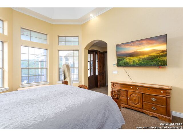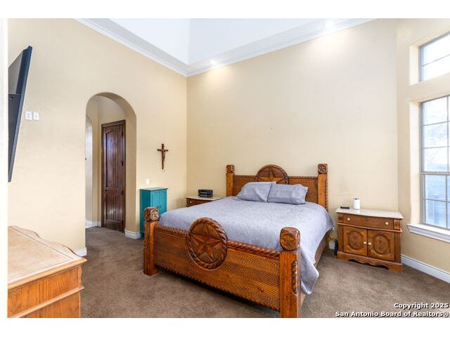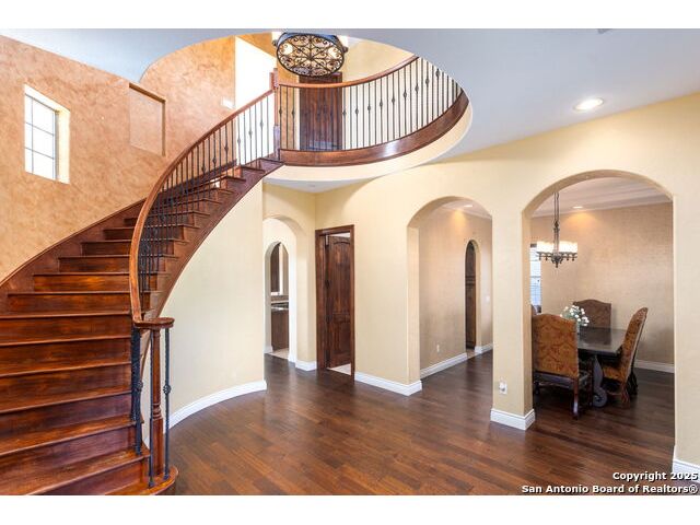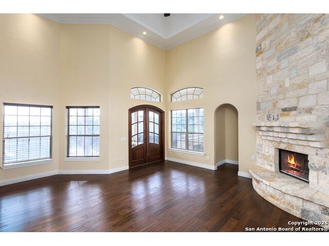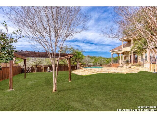 Experience country living at its finest in this custom-built, luxurious 5-bedroom, 3.5-bathroom home in the desirable Laurel Canyon Ranch in Mico. This stunning residence features exquisite details, A beautifully designed driveway leads to a striking stone exterior, accented by handcrafted Cantera columns reinforced with steel and concrete.Designed with superior craftsmanship, this home features 2x6 exterior walls for enhanced structural integrity, supporting the durable concrete title roof-a rare feature that sets this home apart. Inside, soaring ceilings create a grand atmosphere-21-ft inverted pan ceiling in the living room, a stunning 14-ft copper ceiling in the primary suite, and 9-ft ceilings in all other bedrooms. The home boasts a grand spiral wood staircase, solid wood 8-ft doors, 6-inch baseboards, a mix of hand-textured and custom-painted walls, and rich wood flooring, all adding to its timeless elegance. Enjoy your private oasis with a pool, covered balcony, outdoor kitchen, and set on over 2 acres with breathtaking Hill Country views. This is a opportunity to own a one-of-a-kind Hill Country retreat with exceptional design and structural quality.