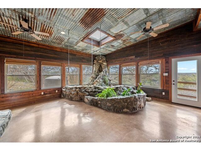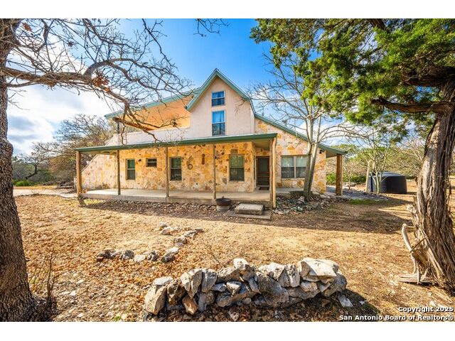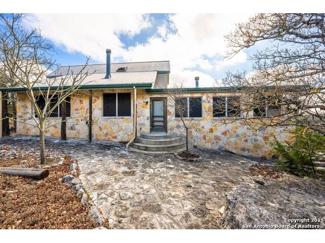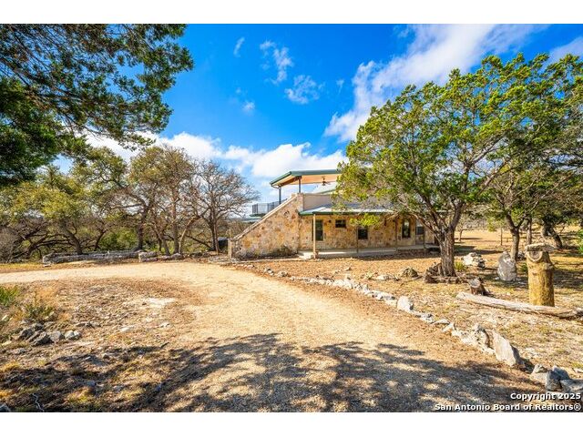 Experience the epitome of Hill Country living with this expansive rock home nestled on over 13 acres in the coveted Guadalupe Ranch Estates of Hunt, TX. Boasting panoramic views of the surrounding hills, this residence offers a harmonious blend of space and comfort. It features 3 generously sized bedrooms and 3 full bathrooms to accommodate family and guests with ease. Beyond the main living areas, the home includes an office, a cozy den featuring a fireplace, two flexible rooms adaptable to your needs, and a charming garden room perfect for plant enthusiasts. Relish breathtaking sunsets from the open patio, where the expansive views create a serene backdrop for evening relaxation or entertaining. A circular driveway leads to a spacious 2-car garage equipped with an additional workshop area, ideal for projects and storage. Three water catchment tanks are strategically installed to efficiently maintain exterior landscaping and gardens. Guadalupe Ranch Estates enhances Hill Country lifestyle with exclusive amenities, including a Deep Water Park, a Shallow Water Park & an Interior park. Embrace the tranquility and beauty of Hill Country living in this exceptional property.