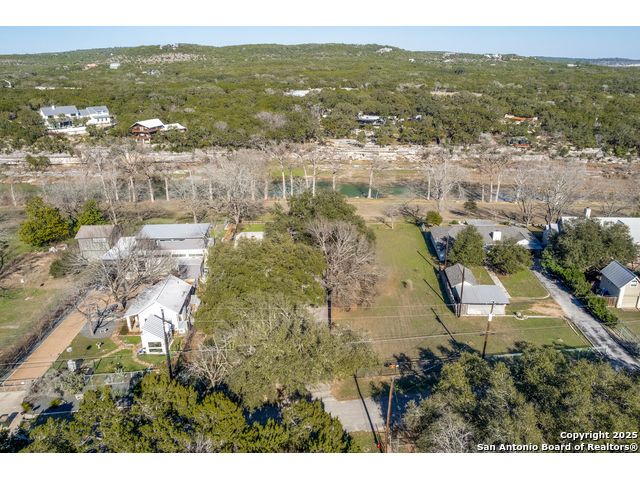 Experience the beauty of living in the Texas hill country at the perfect location on the Blanco River! This property is about 1 mile from downtown Wimberley, a Texas hotspot between Austin and San Antonio that presents the perfect mix of small-town charm, natural beauty and artistic flair. This +/-1 acre property features a beautiful home and an adjacent lot ready for building, a rare find nowadays. The home has two bedrooms, two baths, large living area with wood-burning fireplace, a sunroom, two-car garage, and a large sloping back yard that goes all the way to the riverbank. The home is nestled quaintly under beautiful mature oak trees and the dining and sunrooms have a stunning view of the jewel-green river. The home features a standing seam metal roof, fenced and gated yard, and the luxury of living in a quiet peaceful neighborhood.