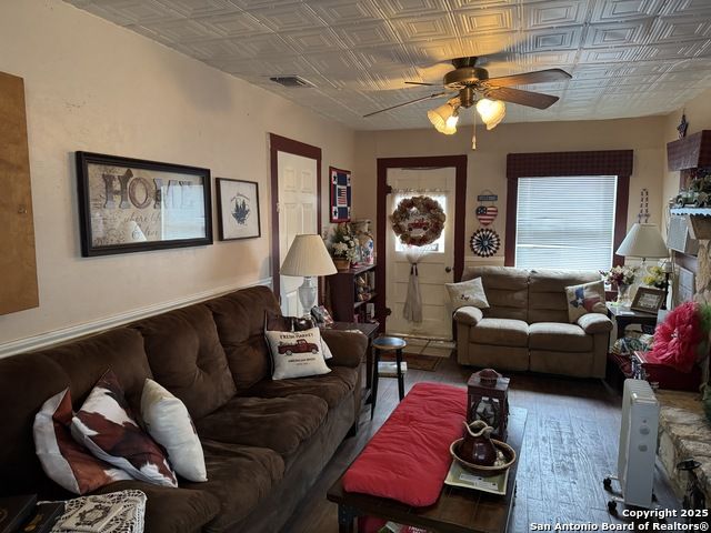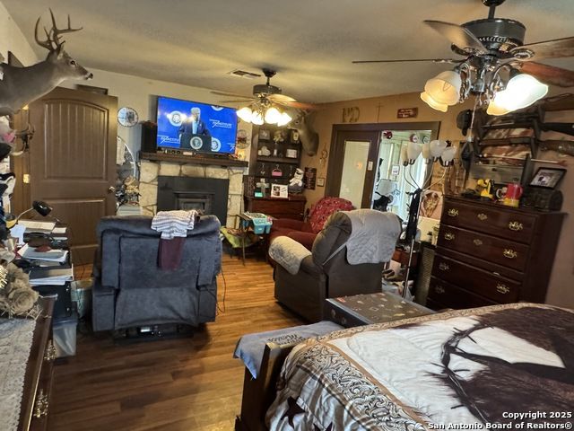 This is Agricultural Exempt Property LOW TAXES!!! Step back in time when your homestead was a 1930 era Fredericksburg Stone house (original walls estimate 2 ft thick), metal roof, two wood burning fireplaces one with wrought iron pot holder for cooking (sellers use this often) and a fireplace in the very large primary bedroom. This house is so cozy and authentic but has all the modern conveniences such as in-house washer/dryer, central air/heat and automatic gate for entrance. This homestead has everything!!! Extras 3/2 mobile home for family or for rental, TWO RV hookups for your use or rentals, huge workshop, working farm, owner produces hay, chicken coops, barn, fruit tree orchard and more you got to see this!!! The property is an active farm with 13 acres for farming, ranching and fruit trees. Fruit and nut trees include: 8 pecan trees, 2 apple trees, 4 peach trees, 4 plum trees, 1 pear tree, approximately 64 tons of hay per year is produced. Property includes a 3 bedroom/2 bath spacious mobile home. Use this for mother-in-law or for lease for investment income. Mobile home has separate electric meter, water and septic system!! Includes RV electrical hookup and with a small addition can be used for two RVs. The best part is you enjoy peaceful country living only approximately 2 miles from 1604 loop and only 19 miles to downtown San Antonio. Agricultural exemption means lower taxes. Property includes a workshop that also can be used for a 3 car garage, horse barn, large poultry shed, tractor barn and more!! If you like having a glass of wine or coffee with a view, or star gazing, you will enjoy the observation deck. Don't let this property get sold before you see it. Less than 30 minutes from downtown San Antonio, Texas.