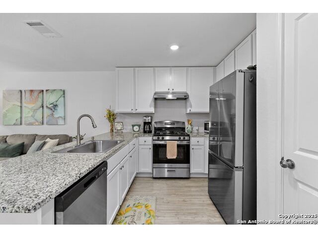 USDA Zero Down Payment Eligible Property! Welcome to your perfect and affordable home sweet home! This adorable 1,189 sq. ft. gem is packed with charm, convenience, and just the right amount of space. Featuring 3 bedrooms, 2.5 baths, and an open floor plan, it's designed for easy living and entertaining. Step inside to a bright and airy living area that flows effortlessly into the modern kitchen-perfect for hosting game nights, dinner parties, or just relaxing after a long day. Upstairs, you'll find all three bedrooms (yes, no hauling laundry up and down stairs!) along with a super convenient laundry area (including stackable washer & dryer!) to make life easier. Love a little outdoor space? The small fenced yard is ideal for your furry friends, a bit of gardening, or sipping your morning coffee in peace. Plus, with a 1-car attached garage, you'll have extra storage or a cozy spot for your ride. Best of all, this home is perfectly located in San Antonio, just minutes from Lackland Air Force Base, shopping, dining, and entertainment. Whether you're a first-time buyer, military professional, or savvy investor, this one is a must-see.
