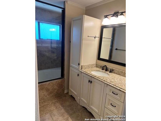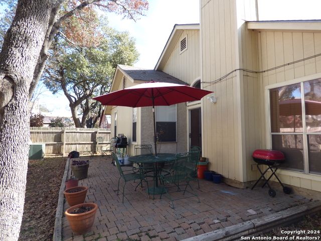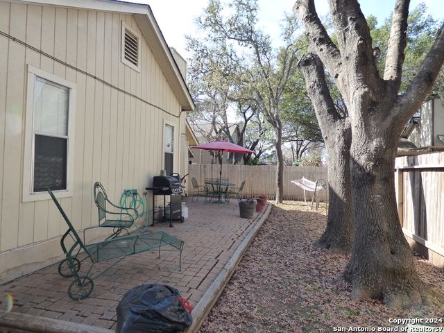 Darling 1 story home - features include an open floor plan**living room with high ceilings & fireplace**ceramic tile flooring everywhere except the new master bedroom carpet**remodeled bathrooms**custom Elfa closets at master bedroom**lots of interior light**separate dining room** island kitchen with gas cooking**breakfast area with built in desk**relax on the over-sized backyard patio**mature trees**close to 1604, 281, shopping, schools and more.
