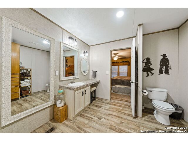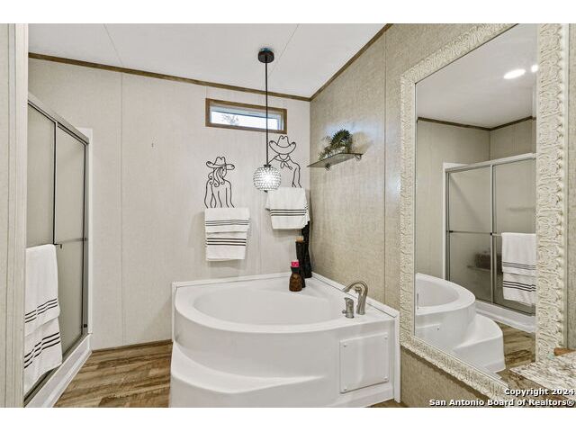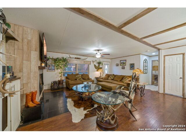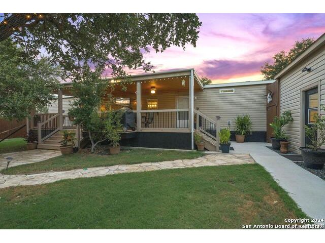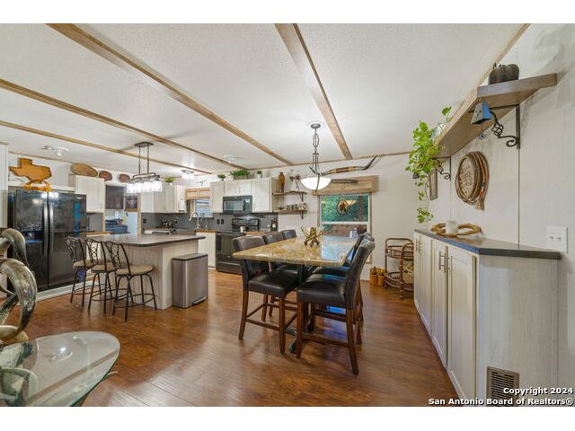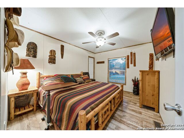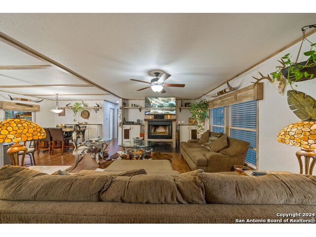 Seller says "I'm motivated and more than ready to sell. BRING ALL OFFERS! Let's do this! Come see my house!" This move-in ready, 3/2 manufactured home that has all the bells and whistles with TONS OF GREAT FEATURES! Those include lovely guest quarters, high speed internet, pool, and a detached oversized "smart" garage. Perfect for full-time living or a fun get-away where you can live it up or live it down! Located in the gated, lakeside community of Holiday Villages of Medina, this home comes completely furnished if desired! Just bring your personal belongings and move in! Added features and upgrades include a fireplace, farmhouse sink, all electric - black Whirlpool appliances, covered back deck that has a Ponderosa Pine - Tongue and Groove ceiling and corrosive resistant railing for low maintenance, recessed hot tub, landscaping, flagstone patio with motion sensor lighting, above ground pool, flooring, custom window treatments, walk-in pantry, custom utility room, and more. Outside, you'll find lots of vegetation, persimmon and oak trees, and a fully sodded lawn. The backyard is privacy fenced and feels very secluded for good times around the pool, chillin' in the hot tub, or entertaining friends on the spacious back deck. The "Smart" garage was built with high end materials, beautifully painted inside and out, and will accommodate large vehicles and a golf cart. The garage door can be controlled remotely through an app. Guest quarters are attached to the garage, along with a workshop, and a garden area behind. Bring your friends and family or enjoy your own "Shangri-la" right here at Medina Lake where the fun never sets. The water level at Medina Lake fluctuates and is currently low. Rain is all it takes to fill the lake back up and, historically, that happens in a day or two. Neighborhood amenities include a community pool with jacuzzi, picnic areas, playgrounds, club house, lake access, boat ramp, fishing pier, basketball courts, inexpensive condo rentals, and so much more for your vacation lifestyle. Minutes from Bandera, TX, the Cowboy Capitol of the World. About an hour to San Antonio International Airport, 45 minutes to Boerne, Hondo and Kerrville.