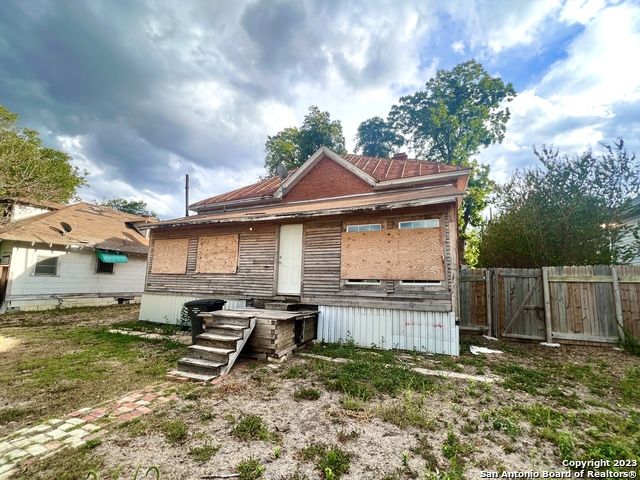 One of only a few brick homes in Dignowity Hill to include a spacious basement. This house can be restored back to a magnificent home and has been prepped for renovations. With incredible 11 ft. ceilings, pine floors throughout, an original fireplace, a second story, segmental arches above the exterior windows, and an incredibly large lot for expansion or an ADU, this home is quite special. This project is in the heart of the Historic District of Dignowity Hill and is in close proximity to downtown, the beautiful Lockwood Park that recently underwent a huge facelift, city pickleball courts, a swimming pool, and some delicious restaurants like The Magpie and Con Huevos. Lots of this size are few and far between and homes like this do not come along that often.