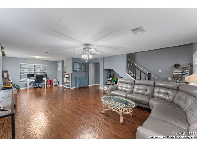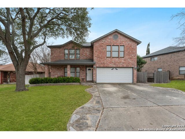 Stunning 2-story brick home with 2334 square feet. 4 bedroom, 2.5 bath. Beautiful wood laminate, ceramic tile downstairs. Incredible back patio with ceiling fans. Mature Live Oak/Mountain Laurel trees and landscaped flower beds. 6 y/o HVAC and 6 y/o water heater. Inviting flagstone pathways line this amazing home on the NE side. Great curb appeal! Built for entertaining.
