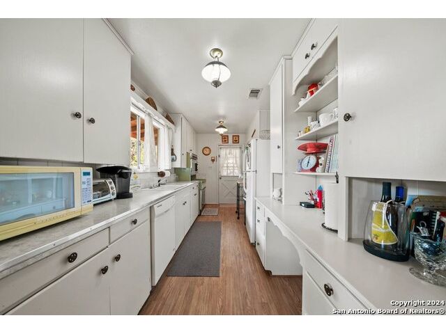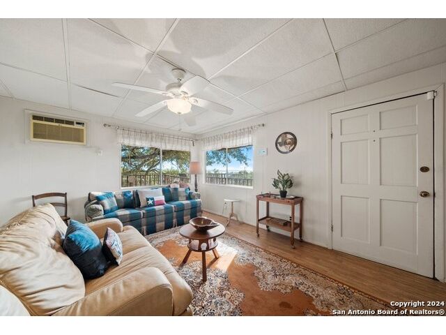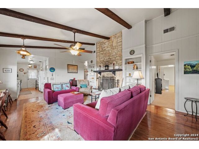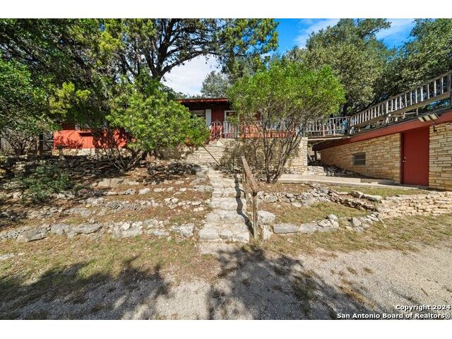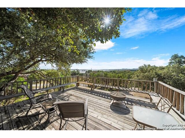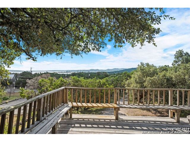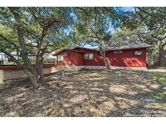 = Major Price Improvement for great water views!!! Whether you choose to make this lake house your year-round haven or your cherished weekend escape, the allure of the water and the beauty of the surroundings promise to rejuvenate your spirit. The lake house has a timeless charm, offering a blend of rustic and cozy features. It sits on two lots, nestled surrounded by mature oaks, with expansive views of the Canyon Lake. The house itself is roomy, built with wood siding that complements its natural surroundings. Large windows across the front of the home offer constant, serene glimpses of the lake, filling the rooms with natural light. A spacious deck, perfect for gatherings or quiet mornings, extends from the side of the house. It provides unobstructed views of the water and is shaded by a towering oak tree, offering a cool retreat during warm summer afternoons. The deck has ample space for outdoor furniture, making it an ideal spot for entertaining or simply enjoying the peace and quiet. Inside, the focal point of the living room is a large, wood-burning stone fireplace that stretches from floor to ceiling. The rustic hearth adds a touch of warmth and character, making it the perfect spot to gather on cooler nights. The additional living area feels open and connected to the rest of the home, enhancing the spacious atmosphere. Adjacent to the bedrooms is a large dressing room, with enough space to be converted into an additional bedroom if needed. The space is versatile and inviting, with the potential for a guest room or a cozy office. The natural setting and stone accents surrounding the house give it a lived-in, welcoming feel, making it an ideal lake retreat.