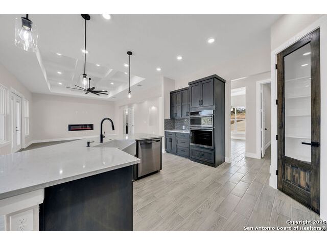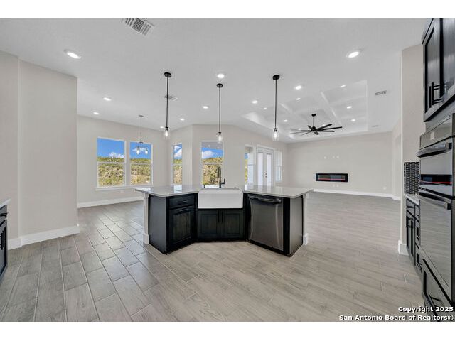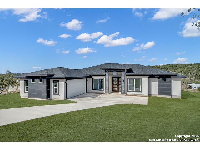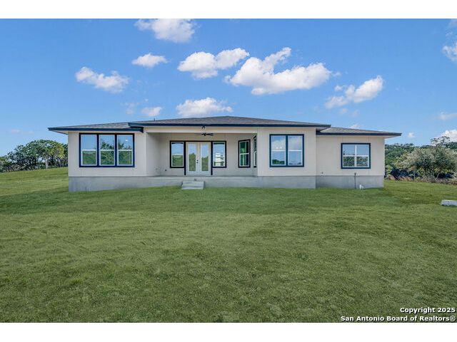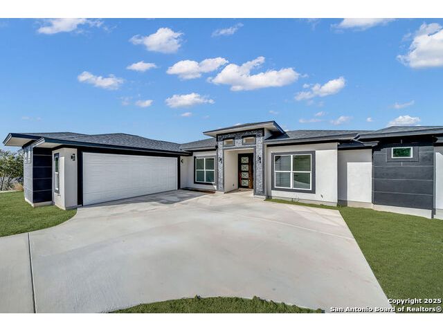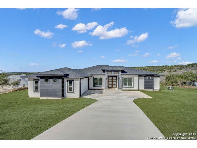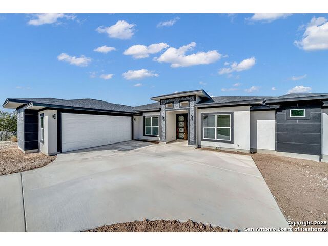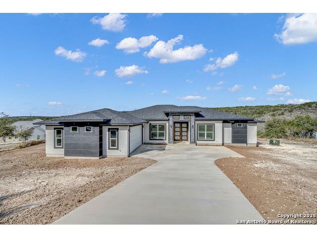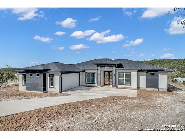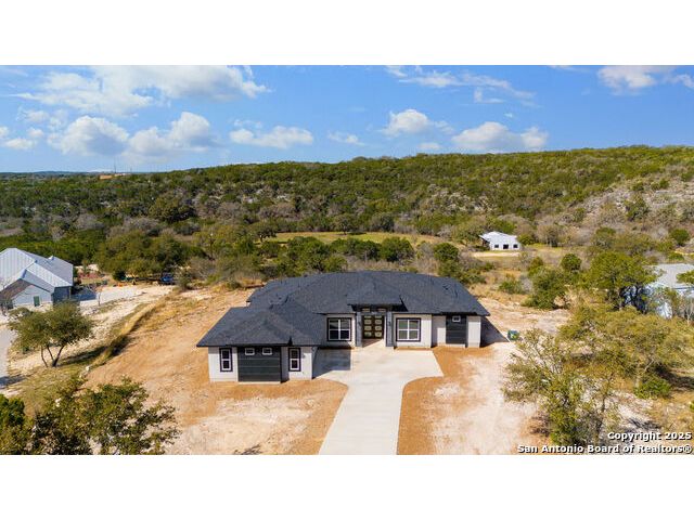ENJOY THE PEACEFUL & BREATHTAKING PANORAMIC VIEWS OF THE HILL COUNTRY JUST LIVING MINUTES FROM EVERYTHING !!! THIS NEW & BEAUTIFUL ONE STORY CUSTOM BUILD HOME SITS ON 2 ACRES, CONTEMPORARY STUCCO EXTERIOR, 2610 SQFT, 3 BEDROOMS, 3 FULL BATH, 1 HALF BATH, STUDY/OFFICE, OVERSIZED 2 CAR GARAGE, OPEN FLOOR PLAN W/ HIGH CEILINGS, SPACIOUS LIVING AREA W/IN WALL FIREPLACE, LARGE WINDOWS, BREAKFAST ISLAND KITCHEN WITH FARMHOUSE SINK, CUSTOM CABINETS, STAINLESS STEEL APPLIANCES, ELECTRIC COOKING, SEPARATE DINING AREA, MASTER RETREAT, LUXURY MASTER BATH W/STAND UP SHOWER AND WALK-IN CLOSET. LARGE COVERED BACK PATIO WITH AMAZING VIEWS. SEE IT TODAY !!!