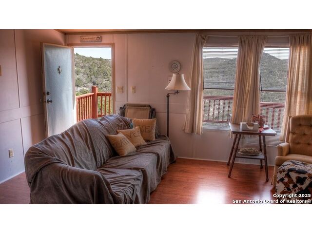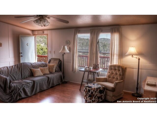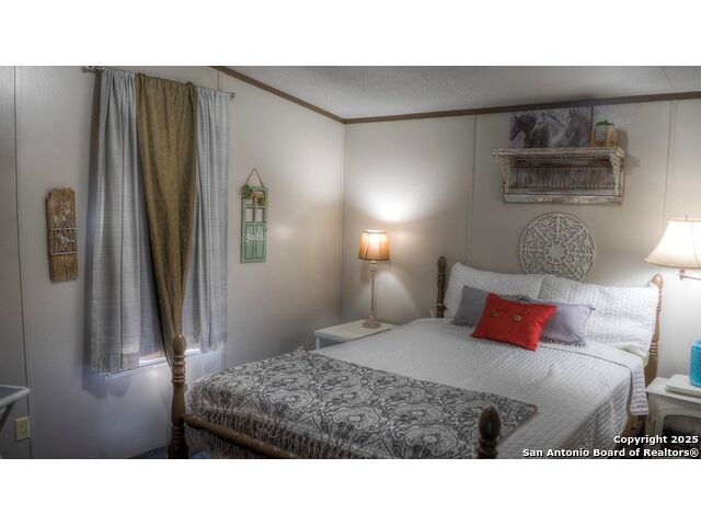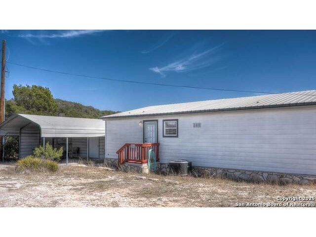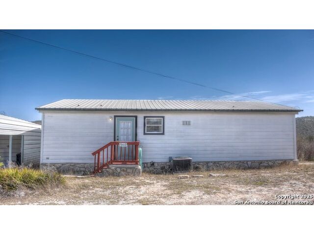 Escape to tranquility while enjoying modern conveniences with this 3-bedroom, 2-bathroom manufactured home situated on 5.2 acres. The property is equipped with a water well, septic system, and electricity. The home features a large wooden deck in excellent condition, perfect for taking in the stunning 360-degree views of the Hill Country. Additionally, the property includes a detached carport with a storage room and is being sold fully furnished. The roof was replaced in 2015, and attractive rock skirting was added around the exterior of the home. Residents of Roaring Springs have access to a 50-acre park that offers hiking trails, RV hookups, a spring-fed swimming pool, and a lake ideal for kayaking and fishing. Your outdoor adventure awaits with this hilltop retreat!