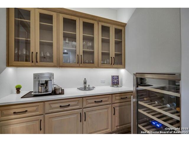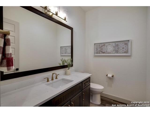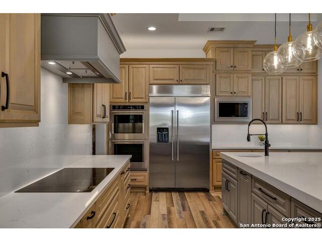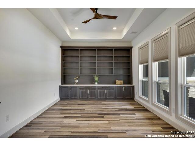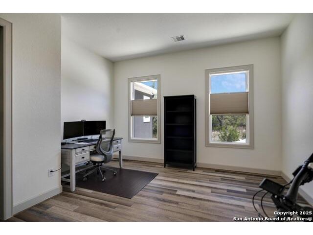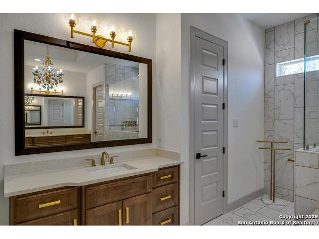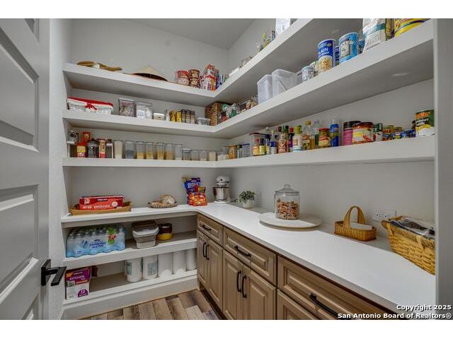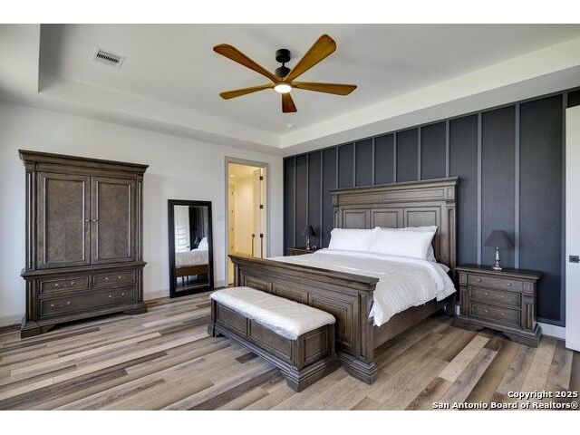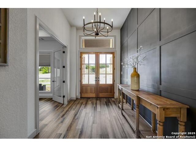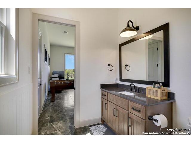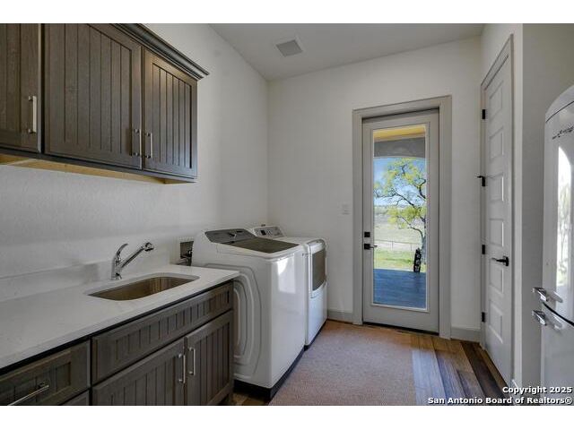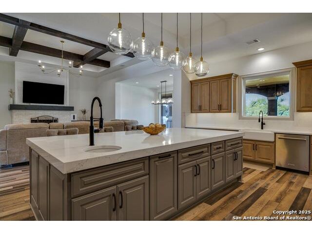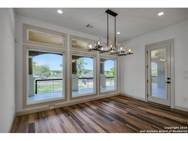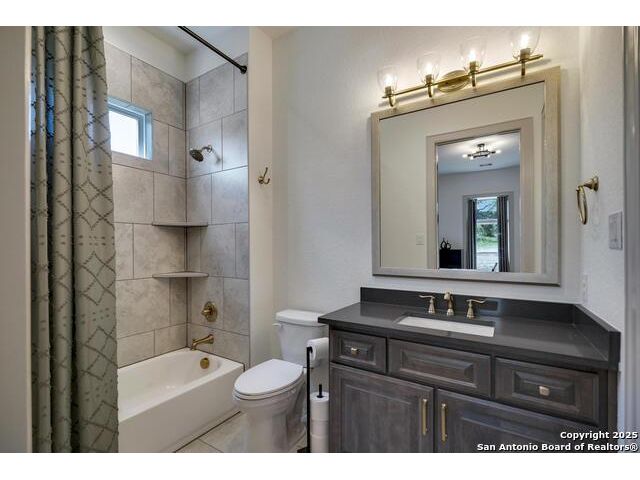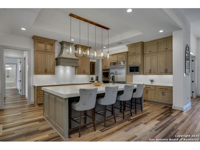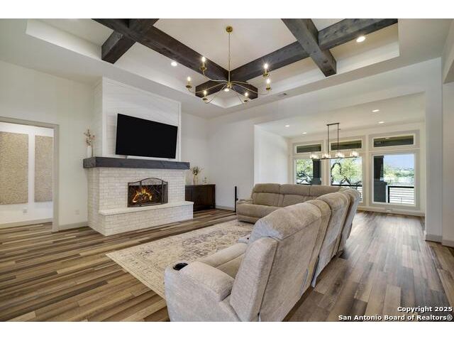 Situated on nearly 5 private acres in the prestigious Mystic Shores at Canyon Lake, this custom estate was completed in September 2024 and offers 6 bedrooms, 5.5 bathrooms, and 5,173 sq ft of thoughtfully designed living space. With two primary suites-one on each level-the home is ideal for multigenerational living or entertaining. High ceilings, natural light, and refined finishes create a warm Hill Country retreat. The kitchen showcases a dramatic quartz island, KitchenAid appliances, cast-iron apron sink, walk-in pantry, and a butler's pantry with custom storage, all flowing into open living and dining areas. The oversized detached garage includes a climate-controlled gym, workshop, additional living space, and half bath. Modern conveniences include ADA-compliant ramps, upgraded 400-amp service with EV outlets, and a fully fenced yard with security system. Forever-unobstructed views of the adjacent nature preserve add privacy, while community amenities include pools, pickleball and tennis courts, trails, clubhouse, and direct lake access. Here, mornings start with kids in the living room while you prepare breakfast, afternoons are for BBQs and outdoor play, and evenings bring movie nights or stargazing from the patio.