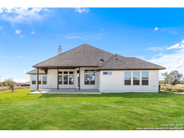 *** BUILDER FLEX-CASH INCENTIVE AVAILABLE! ***This is a stunning custom single-story home on 1.01 acres, ready for quick move-in. This beautifully designed 3-bedroom, 3-bath home offers 2,674 sq. ft. of open-concept living with high-end upgrades. Featuring a study and game room, this home blends elegance with functionality. The spacious family room boasts a 13.5' waffle ceiling with crown molding and an 84" ceiling fan. A 42" fireplace with a Francesca III mantel and gas log starter adds warmth and style. Double 8' iron entry doors lead into a grand foyer, setting the tone for the luxurious design. The primary suite features double tray ceilings, a spa-like bath with a freestanding tub, a separate shower, raised vanities, and a walk-in closet. The chef's kitchen is designed for entertaining with double-stacked white cabinetry, upgraded granite countertops, an induction cooktop, a built-in microwave and oven, a pull-out trash bin, and spice racks. An oversized laundry room and separate mudroom add convenience. The home includes an expansive covered patio perfect for entertaining, a 3-car side-entry garage with openers, an oversized driveway, and a fully landscaped yard with a sprinkler system. This home is a must-see in a serene setting with high-end finishes and thoughtful details.