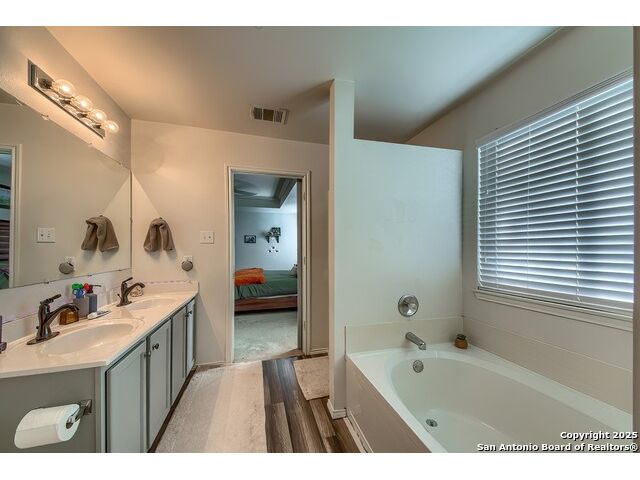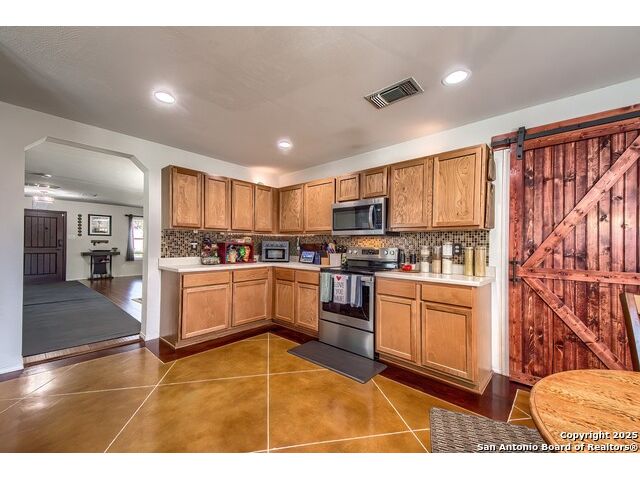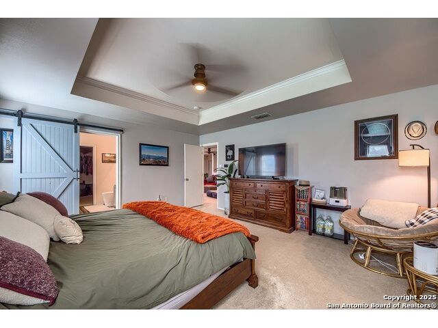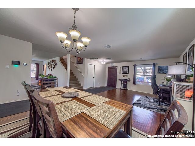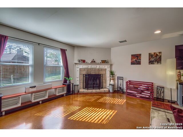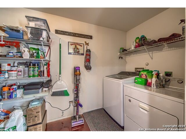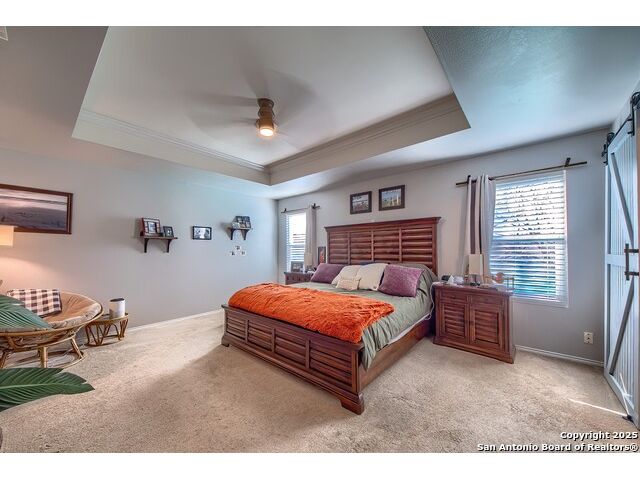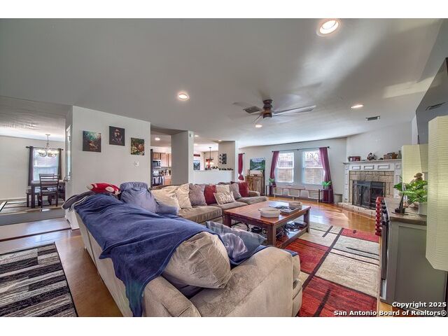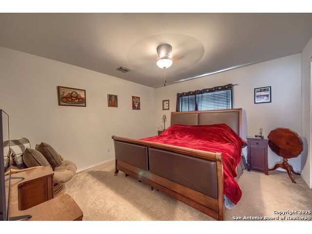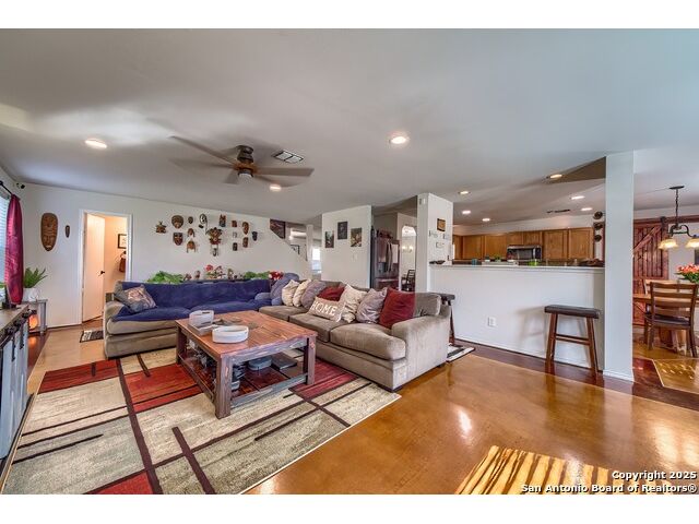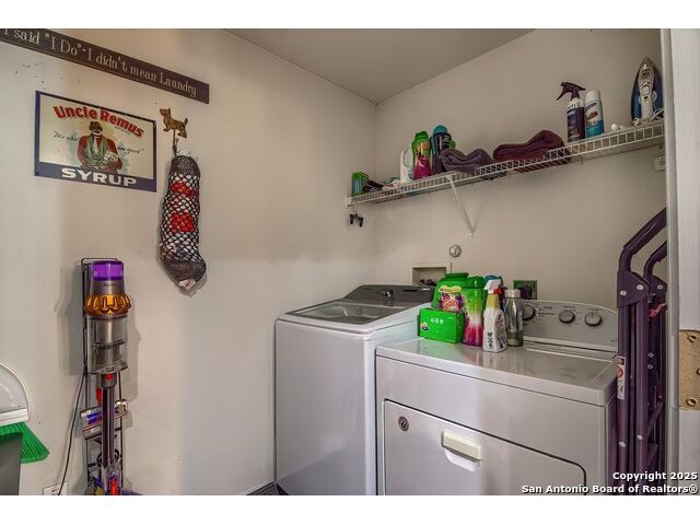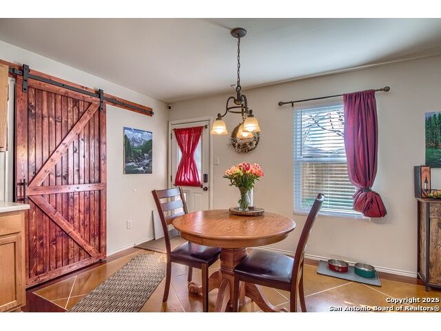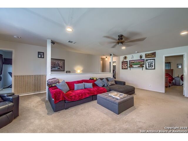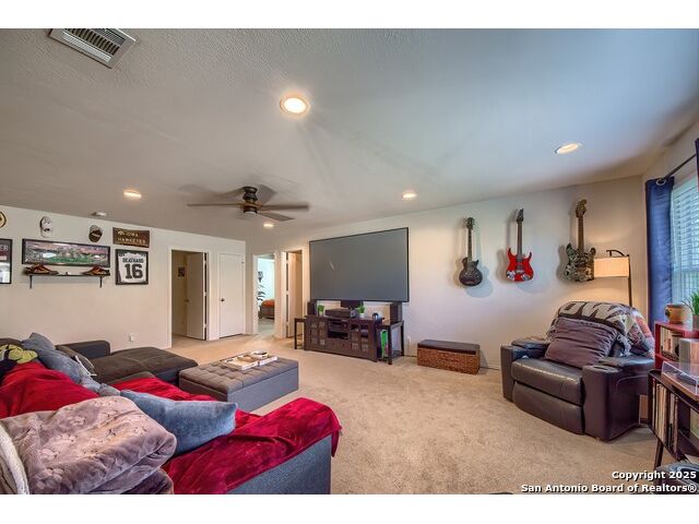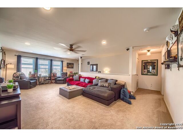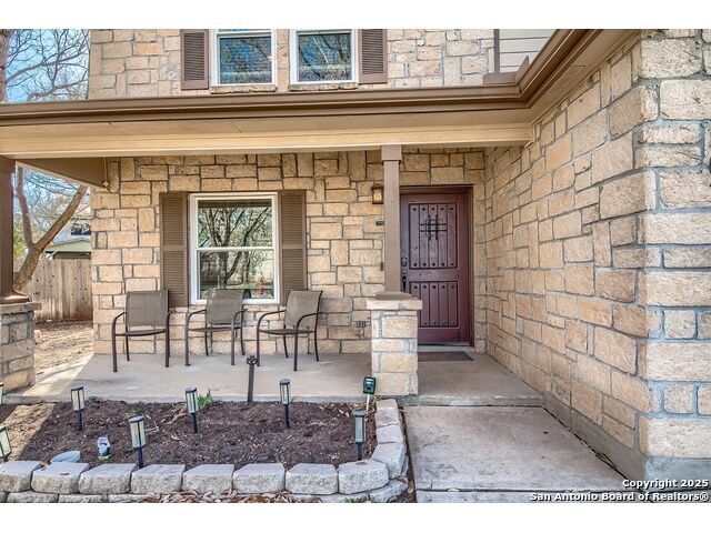Open House, Saturday, November 30 --12-2 pm. PRIDE OF OWNERSHIP IS UNDENIABLE IN THIS 3070 SQUARE FOOT, TWO STORY LIMESTONE HOME IN SELMA! If four bedrooms, two dining, three living areas and a flowy floor plan aren't enough, calculate all the extras these owners have added to their lovely home in an uber-convenient pocket in northeast San Antonio and you have a winner. Beautiful energy efficient windows, a full irrigation system, 8 camera/3 panel security system, barn door accents and young heat pump HVAC are just a few of the upgrades that elevate this home above the rest. There aren't many homes that simultaneously invite the party and welcome cozy comfort but this is one. Pull up to a secluded spot at the end of a cul-de-sac to a home that beckons you in. Pause at the darling front porch, a perfect spot to watch the world go by, then step through a classy wood door into a spacious living/dining space that opens into the family room, kitchen and breakfast nook -- all this with wood laminate and stained concrete floors (no carpet down!). The fireplace gives a sense of atmosphere to this open space big enough for a huge sectional and overlooked by the large kitchen with its glass tile backsplash and island. Stainless appliances, including a new dishwasher, will make the chef happy, along with all the counter space. A barn door ushers entry into a massive pantry with literally rows of shelving, shared with the washer/dryer utility to keep all the chores in one place! Check out the attached two-car garage which offers space for more storage (as if you'd need it!). A half bath off the family room is ideal for guests. Pop up the extra wide and welcoming stairs to another amazing layout. The large (22x14ft) loft sits in the center of the space, set up now as a media room, but with lots of options for use including game room or play room. The primary suite easily accommodates a king bed and more with the lovely decorator touches of coffered ceiling and wooden barn door which leads into the ensuite bath with double sink vanity with sitting space, huge garden tub, walk-in shower, separate water closet, storage and massive walk-in closet that could not possibly leave you wanting for more space! Two other extra spacious bedrooms sit on the other end of the floor with nice closets and a shared bath with new fiberglass shower/tub combo with lots of smart shelves for bath stuff. The fourth bedroom sits off another corner of the floor for privacy and is also ideal for an office space or gym. Out back you will enjoy a lush, extra large and wide yard (thanks to the cul-de-sac) with a new privacy fence, that is level and ready for your imagination -- just add garden, pool or playscapes! The new windows through certainly help with utility bills, which for the owners, have run in the 200s and below! Better than new, this one is move-in ready. All this in quiet Retama Springs, right off Loop 1604 and I-35, making the commute to RAFB, downtown San Antonio and all the fun in New Braunfels easy. It is minutes from grocery stores and shopping at the Forum. Here is your challenge - try to find another option that offers location, size, upgrades for this price and run to offer on this one!