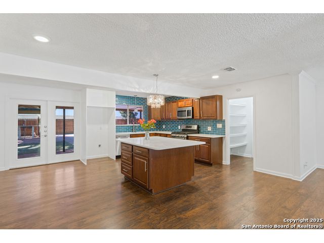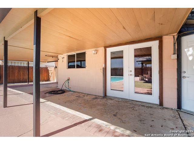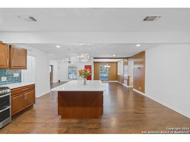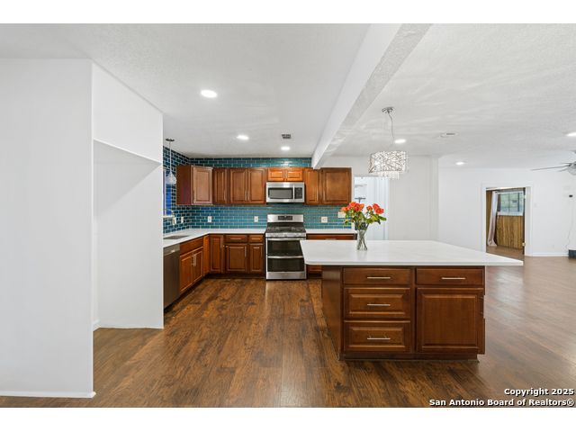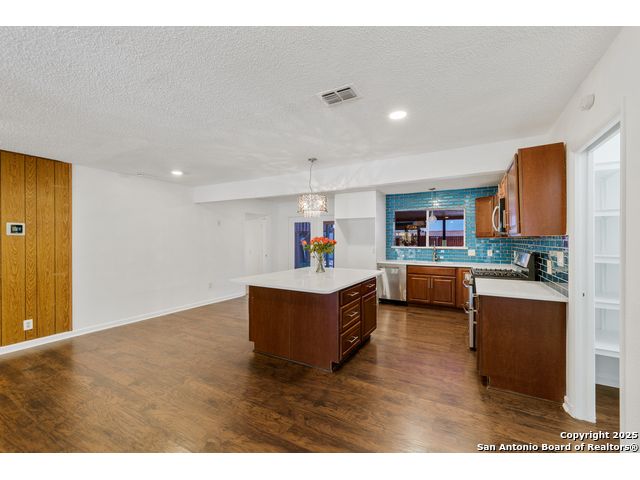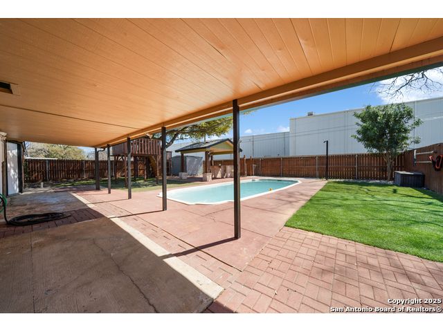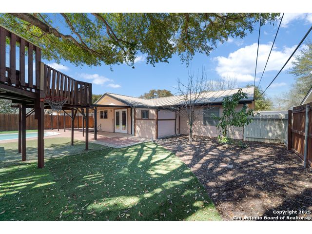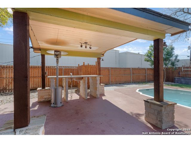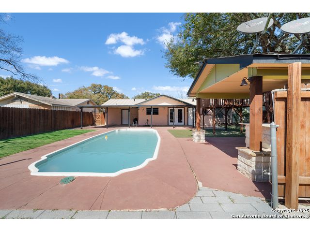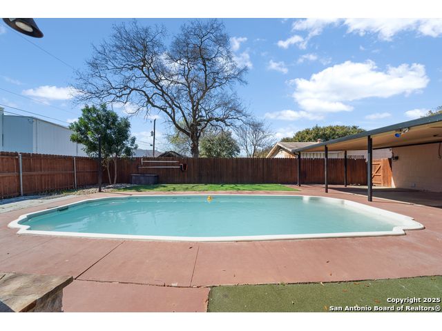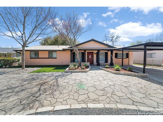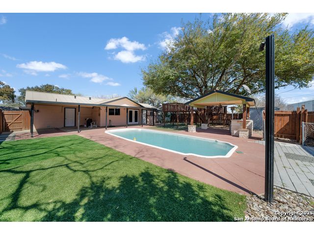 In ground pool (28x12), metal roof, circular driveway, stainless steel appliances, island kitchen w/granite counter tops, chandelier above island kitchen, artificial turf front and back yard, covered back patio, parklike backyard, ceiling fans throughout, update HAVAC, inside utility room, separate office, no residential neighbors behind, convenient to downtown. Shows well. You won't be disappointed.