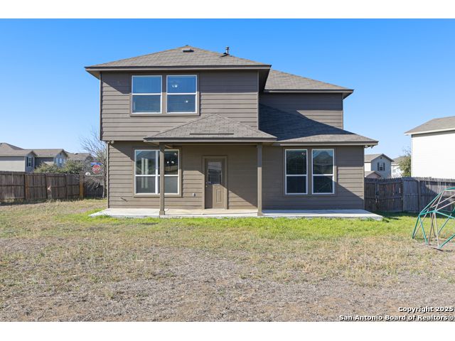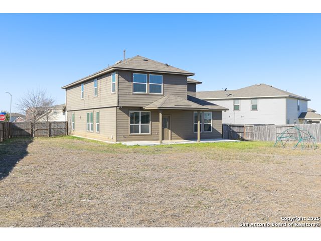 Stunning 5-Bedroom Home with Spacious Loft and Expansive Backyard!! Nestled on a desirable corner lot, this spacious 5-bedroom, 3.5-bathroom residence offers a blend of comfort and luxury. The thoughtfully designed floor plan includes a versatile study/office space, perfect for remote work or personal projects. Key Features: Bedrooms & Bathrooms: Five generously sized bedrooms provide ample space for family and guests. The master suite offers a private retreat, while the remaining bedrooms are serviced by well-appointed bathrooms, including a convenient Jack and Jill setup. Living Spaces: Enjoy the expansive loft area upstairs, ideal for a game room, media center, or additional living space. The open-concept design seamlessly connects the living, dining, and kitchen areas, creating an inviting atmosphere for gatherings. Kitchen: The well-equipped kitchen features modern appliances, abundant cabinetry, and a spacious island, making meal preparation a delight. Outdoor Area: Step outside to a very large backyard, offering endless possibilities for outdoor activities, gardening, or future pool plans. The corner lot provides added privacy and space. Parking & Storage: A two-car garage ensures convenient parking and additional storage options. Location Highlights: SERVICE MEMBERS - both Lackland AFB and Kelly AFB are in the area, making this an ideal location for military families. Educational Facilities: Frank Tejeda Academy is located just 0.5 miles away, making school runs both quick and convenient. Recreational Amenities: The neighborhood boasts a golf course, and close proximity to Roosevelt Opposite Memorial Stadium offering residents leisurely outdoor activities just a short stroll from home. This home combines spacious living areas, thoughtful design, and a prime location, making it an excellent choice for families seeking both comfort and convenience.