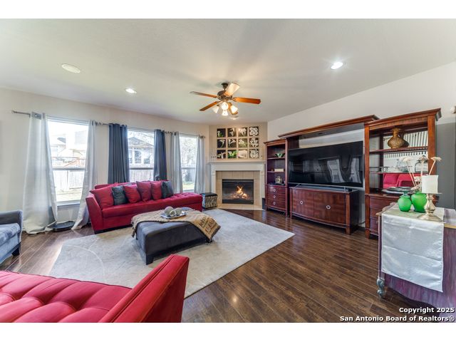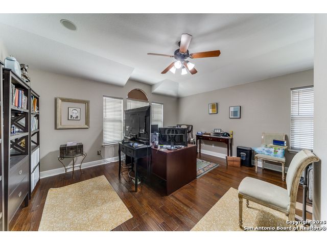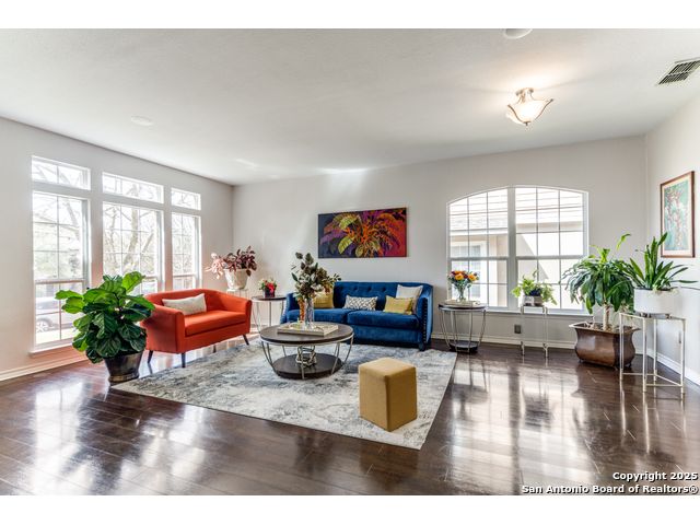 This beautiful move in ready 4-bedroom, 3-full bath home in Stone Oak offers the perfect blend of comfort, style, and location. New Roof (July 2024). Spacious 3,200 sq ft layout with two living areas downstairs. Hardwood floors throughout (no carpet) First-floor guest suite with full bath-ideal for guest or multi-generational living. Private office/game room for work or play. Luxury primary suite with spa-inspired bath and dual walk-in closets. Gourmet kitchen with imported granite countertops. Finished garage with tiled floors and built-in storage racks. Energy-efficient upgrades throughout. Located inside a gated Stone Oak community with Olympic-size swimming pool, tennis courts, playgrounds, and parks. Minutes from schools, medical centers, shopping, dining, and easy highway access. Schedule your private showing now.