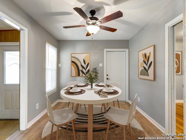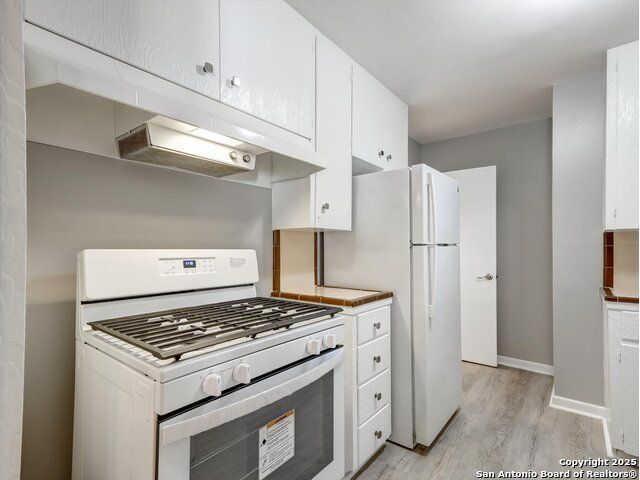 Sweet traditional home featuring original 1956 wood flooring. Very clean and clearly loved by the original owner who owned 1956-2013. Quaint 50's tile in the bathrooms and kitchen, mature trees and vinyl siding. Fresh interior paint, wood floor was refinished, modern hardware and window treatments installed. New free-standing gas range. Covered patio. Large exterior workshop. Previous owner installed vinyl laminate in kitchen/breakfast. Lots of built-in storage in the garage. Utility is located in garage. Gas dryer conveys. The wood platform to the workshop needs work. You'll love this home!