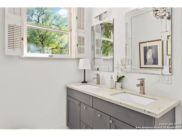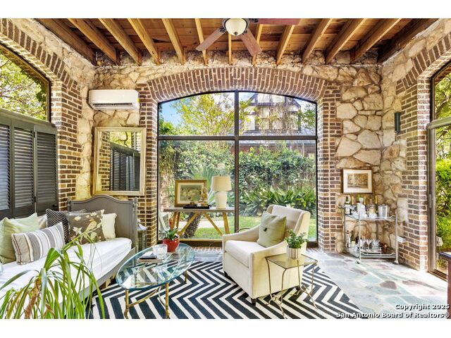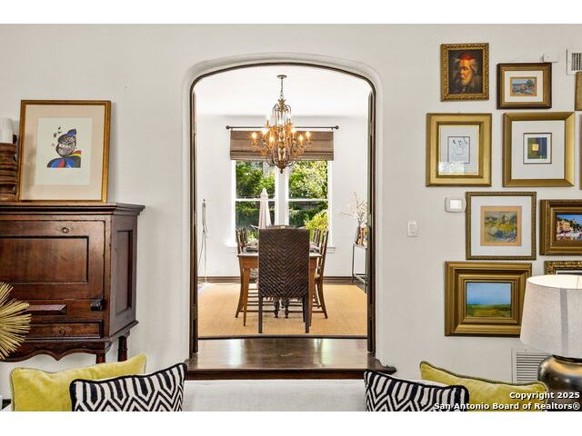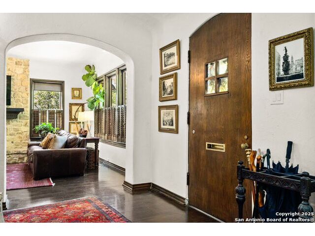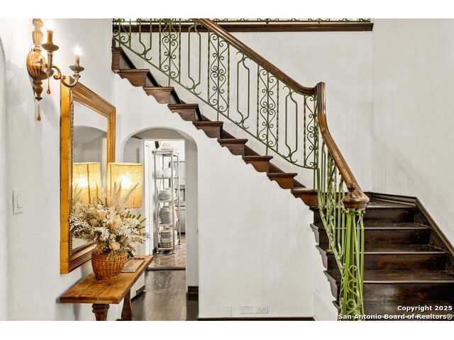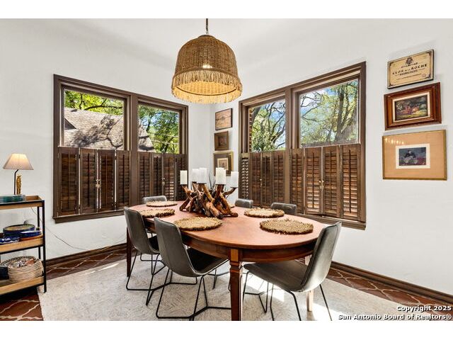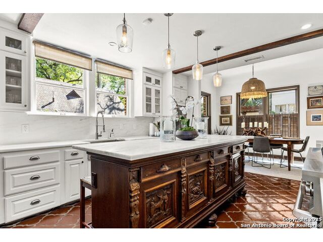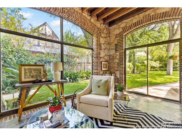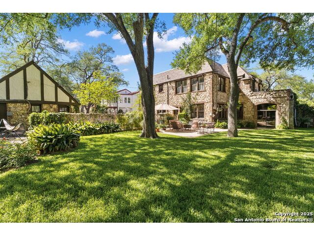 Below market second lien owner financing available. Step into a remarkable Tudor estate that blends historic charm with an updated open floorplan. Great flow for everyday living and entertaining your family and friends. Located in the Monte Vista historic district near Trinity University, character abounds in this majestic home. Craftsmanship and architectural details create an unparalleled living experience. With it's tall ceilings, thick stucco walls and curved ceilings throughout, this 1934 residence is a testament to a bygone era. A two story grande foyer with arches leads to a spacious living room anchored by a magnificent wood burning fireplace which flows into the charming sunroom that looks out onto a park-like setting. The family room centers around a large stone fireplace and opens into a large breakfast room/chef's kitchen with a 6 burner gas stove. Double ovens makes holidays and entertaining a breeze. The separate dining room which is surrounded by windows overlooks the treed backyard. The light-filled sunroom is the current owners favorite reading retreat. Upstairs has 3 large bedrooms. The primary has a sitting area and the en-suite has a European style tub with double vanities and bidet. There is a private patio and an en-suite with bedroom # 2. The other large bedroom has built in floor to ceiling bookcases and plantation shutters. The guest house is perfect for family/friends or for additional income. It has a full kitchen, bedroom and bath, plus a study nook and small living area. Situated only one block from Trinity University, it is perfectly located near restaurants, shopping, Central Market, historic Landa library, multiple parks and the zoo. This home is a testament to San Antonio's historic past and affords the right family an opportunity to live in an historic home without sacrificing modern conveniences.
