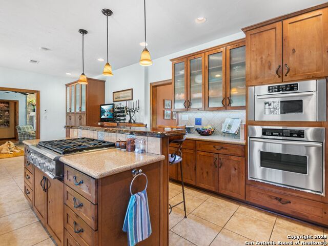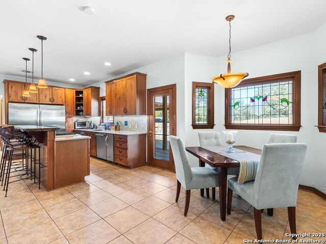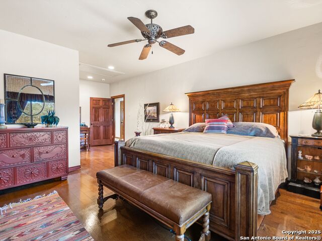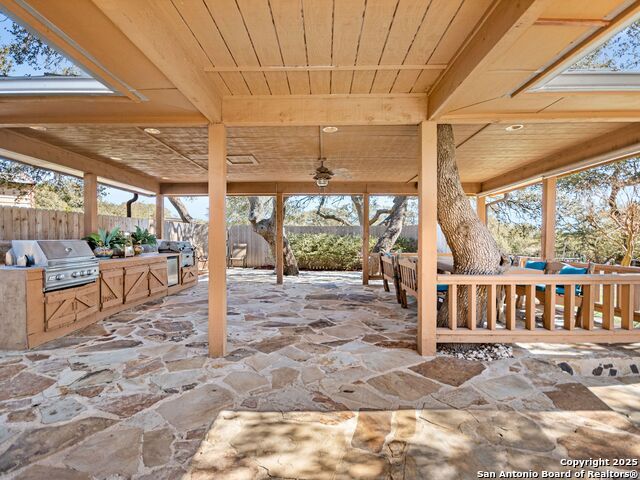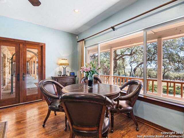 Unrestricted Boerne Living! Located less than 5 miles to Downtown and Main Street, this meticulously cared for property has everything you have been looking for. Enter through the custom mesquite front doorway into this timeless and classic Hill Country home. With custom features abound, the large windows allow for plenty of natural light and seem to invite the peaceful setting inside as you unwind and discuss your day. Or perhaps cozy up with a glass of wine by the fire in the living room and watch the deer play outside. Prepare gourmet meals on the gas cooktop while enjoying the custom features that are sure to last a lifetime and serve in either of the two eating areas to include the kitchen table or the lovely dining room with additional views. The huge primary suite offers privacy while also providing for access to the pool and outdoor living and the sizable bonus room off the primary bathroom allows for a perfect exercise room, studio or additional closet or storage. The property also features a massive guest suite downstairs that can only be described as luxury for your guests. Rounding out the downstairs is an office any home worker would be envious to have. Exterior access to the office also allows for business associates and clients to access without interrupting your home if needed. Upstairs is a massive loft complete with second wood burning fireplace and built ins for school, work or play. Two additional large bedrooms each with their own bathroom suites make this home truly unique. Outside you can swim in the pool while enjoying picturesque Hill Country views while the outdoor kitchen is fired up grilling no doubt the best burgers you will ever taste. Bring your horses and let them roam in the front pasture by day and house them in the 5 stall barn at night. An RV electrical hookup is also ready for your friends and family to pull up and visit anytime. This property truly has everything you can want and look for and all within 5 miles of downtown Boerne. Come see this amazing property today!