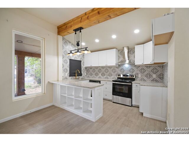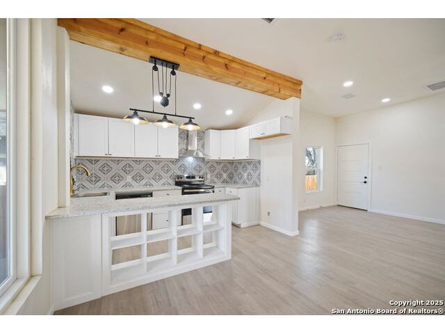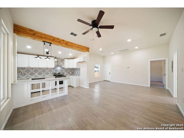 Freshly remodeled home awaiting its new owner! Welcome to this modern single story nestled in the heart of downtown! You will love the open floor plan with laminate wood flooring and stunning new contemporary lighting throughout the home. The kitchen boasts beautiful granite countertops, new white sleek cabinets and new stainless steel appliances. Inviting primary suite with full bath that includes a luxurious tiled shower. Spacious secondary bedrooms and bath! Both bathrooms have been recently updated. Come enjoy the perks of downtown living! You don't want to miss out on this gem. Only minutes away from Spurs games at the Frost Bank Center and all of Downtown San Antonio's best attractions!