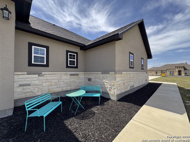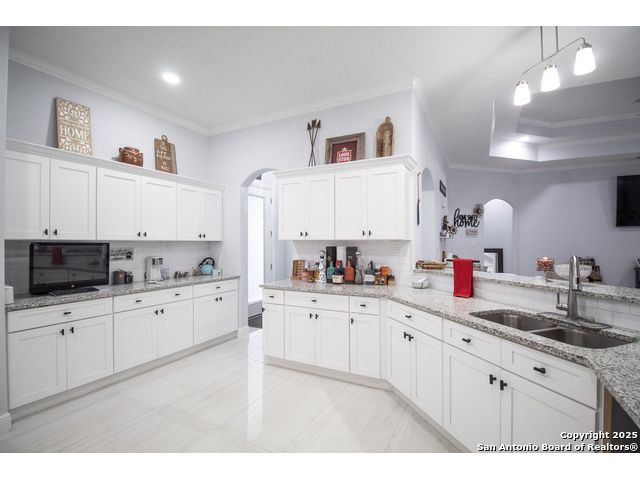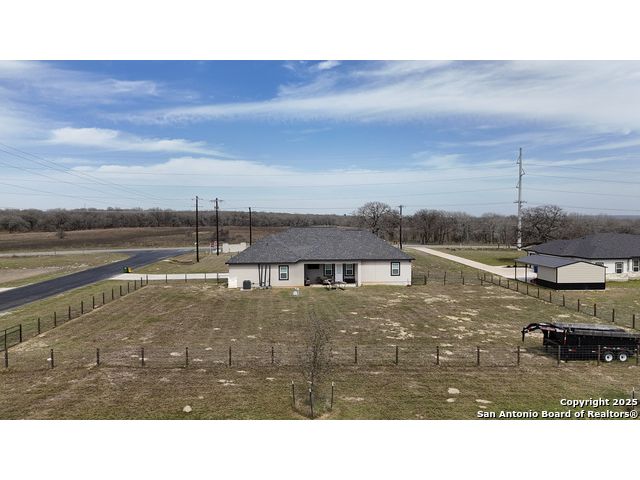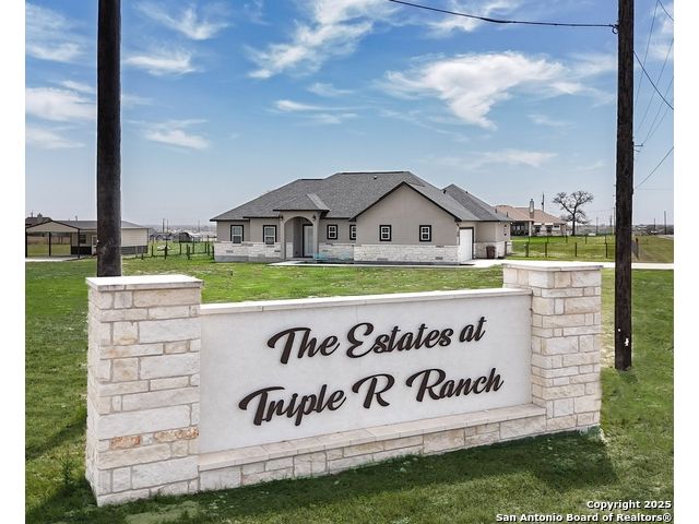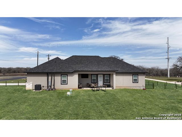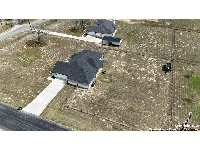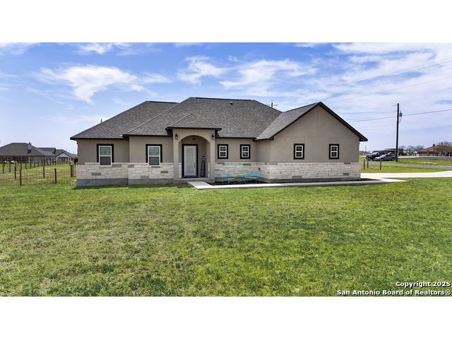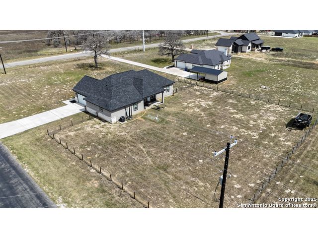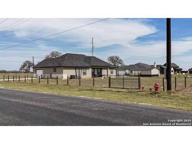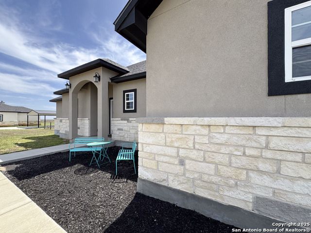 Beautiful 4-bed, 2.5-bath home on a spacious 1.02-acre corner lot in the heart of La Vernia! With 2,552 sq ft of thoughtfully designed living space, this home features soaring 12' tray ceilings, elegant porcelain tile, and an open-concept layout perfect for entertaining. The chef's kitchen boasts granite countertops, a custom backsplash, walk-in pantry, and a striking archway. The private owner's suite offers a luxurious en-suite bath with double vanity and a stunning tumbled stone walk-in shower. Step outside to a covered patio overlooking wide open space-ideal for relaxing evenings or weekend gatherings. This beautifully maintained property offers comfort, style, and room to grow-come see it for yourself!