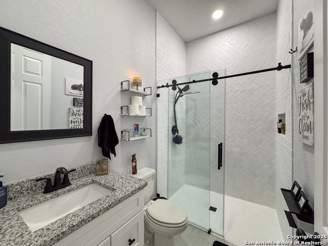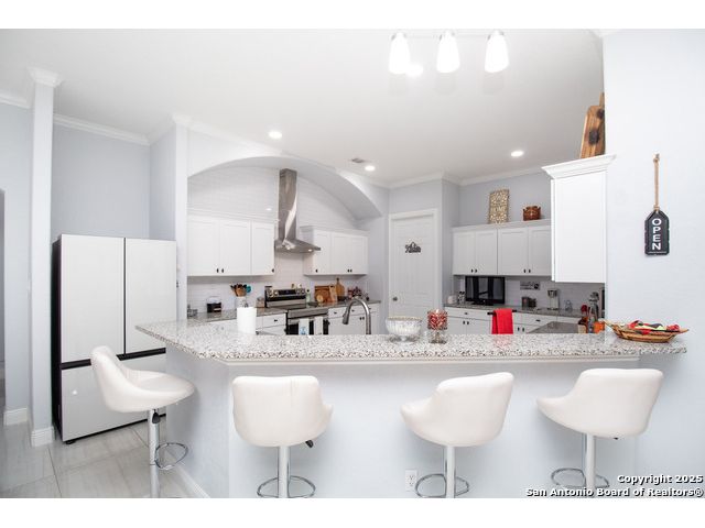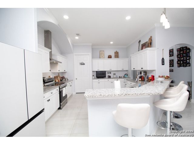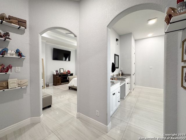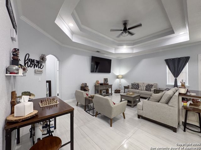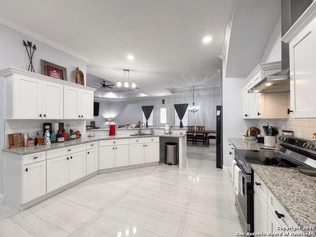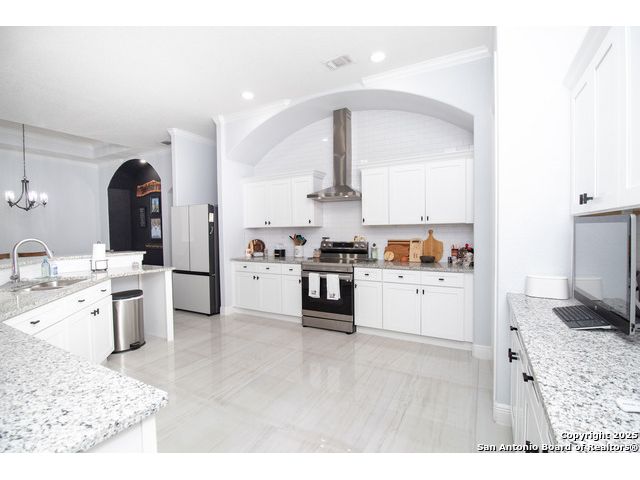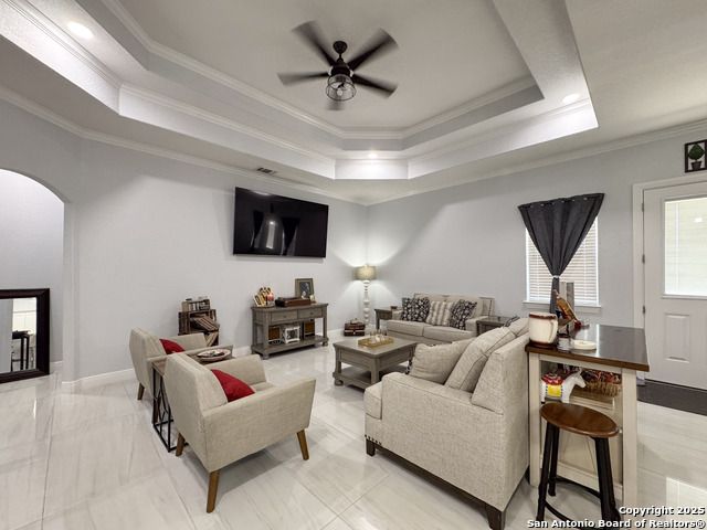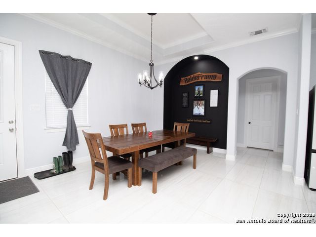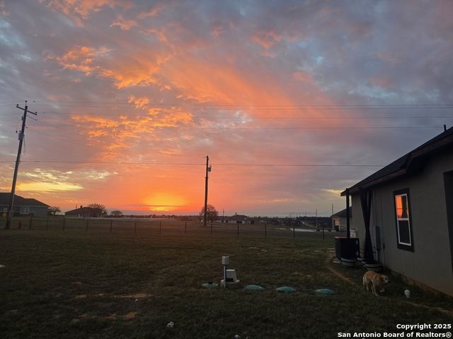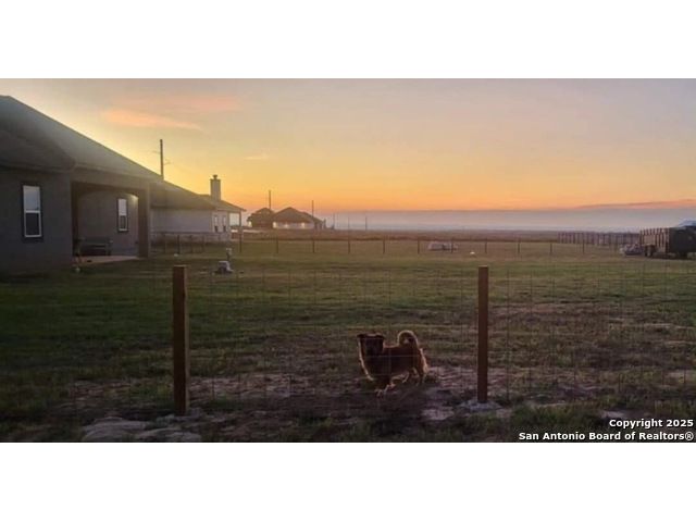 Beautiful 4-bed, 2.5-bath home on a spacious 1.02-acre corner lot in the heart of La Vernia! With 2,552 sq ft of thoughtfully designed living space, this home features soaring 12' tray ceilings, elegant porcelain tile, and an open-concept layout perfect for entertaining. The chef's kitchen boasts granite countertops, a custom backsplash, walk-in pantry, and a striking archway. The private owner's suite offers a luxurious en-suite bath with double vanity and a stunning tumbled stone walk-in shower. Step outside to a covered patio overlooking wide open space-ideal for relaxing evenings or weekend gatherings. This beautifully maintained property offers comfort, style, and room to grow-come see it for yourself!