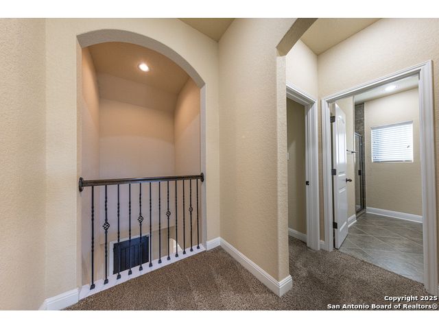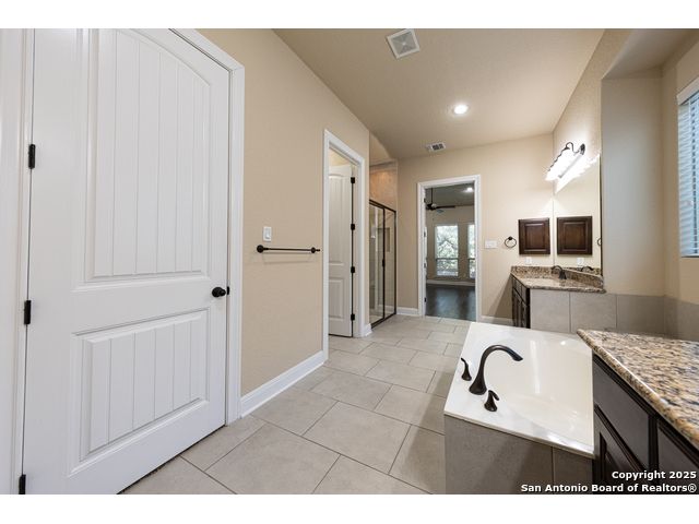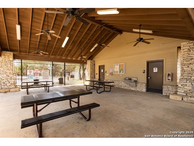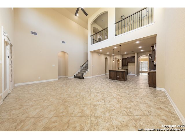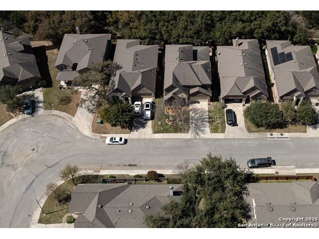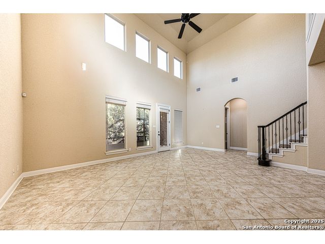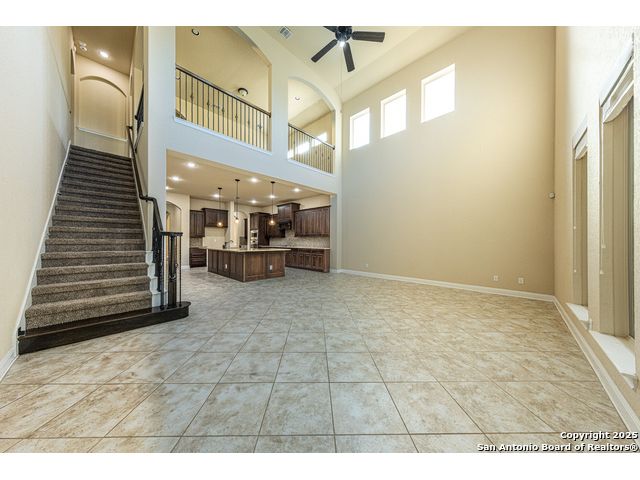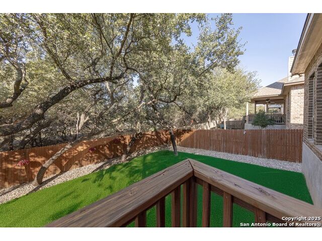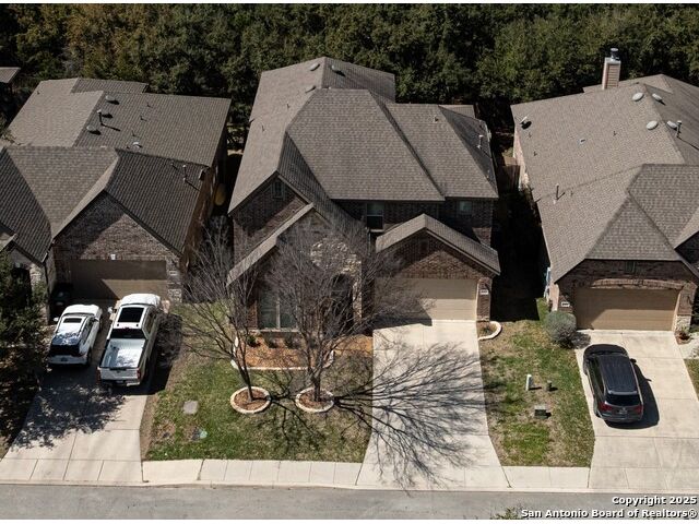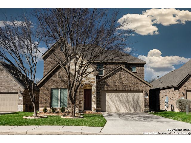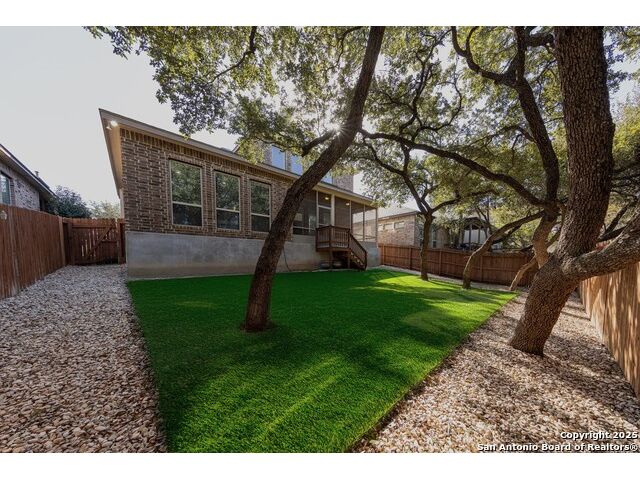 Welcome to this stunning, well-maintained home with soaring 20ft ceilings in the desirable Fallbrook community in Boerne with resort-style amenities! Ideally located off I-10, you'll enjoy easy access to downtown Boerne and The Rim or La Cantera in San Antonio, all while living in a peaceful, gated neighborhood with a pool, splash zone, playground, and park for the whole family to enjoy. Step through the freshly stained front door into a grand entryway with architectural accents. Wood and tile flooring throughout the first floor offer cleaning convenience and durability. The massive Chef's kitchen is a standout, featuring beautifully stained wood cabinets, stainless steel appliances, a huge island and granite countertops complemented by a warm mosaic tile backsplash. With gas cooking, a large walk-in pantry and tons of storage, this space is perfectly designed for beauty and function - making meal prep or entertaining a breeze. The kitchen opens to your large, inviting living room with massive ceilings. Just outside, your living space extends to a beautiful screened-in patio with a TV, a stained wood ceiling and stamped concrete flooring for an elegant touch that feels and looks like stone - perfect for alfresco living. Better yet - leave your worries (and your mower) elsewhere with your xeriscaped backyard featuring high-end turf with gravel accents giving you a green, water-efficient oasis to enjoy year-round under the shade of your mature oaks. Back inside, the primary suite on the first floor features a spa-like bath with dual sinks, tons of counter space, a large soaking tub, and a beautifully tiled shower along with a massive walk-in closet. Upstairs, you're greeted by a huge loft accented by decorative iron spindle railings for an elegant and versatile space with lots of natural light that could be perfect as a second living area or a game room. Just off the loft awaits a reading nook, a full bathroom and a large secondary bedroom (which could easily be converted into a second private suite, if preferred). The other two bedrooms are generous in size with tall ceilings, larger closets and a jack and jill bathroom with two private sinks. Additional upgrades include a water softener system and a security system with cameras. The home even has smart auto-locks on the front door and garage door for added security and peace of mind. This home's thoughtful upgrades, prime location and Fallbrook's top-tier amenities make this home an exceptional find at a great price! NOTE: The seller is willing to paint the kitchen cabinets white & the living room/kitchen walls & ceilings a lighter color if preferred by a buyer (with an acceptable offer). A mockup of white cabinets with an eggshell color paint is shown in the photos for reference.