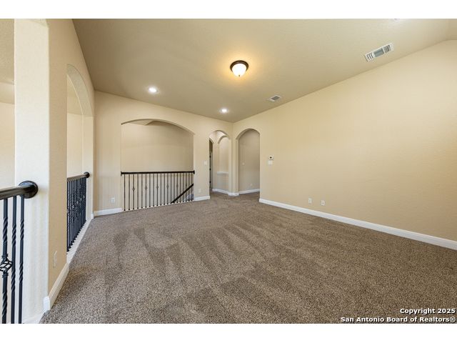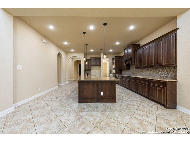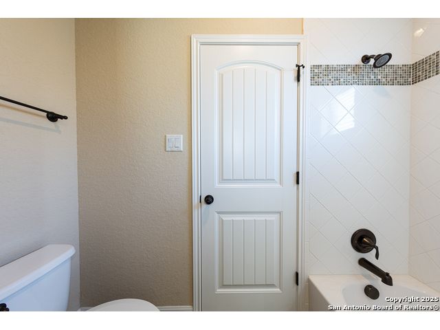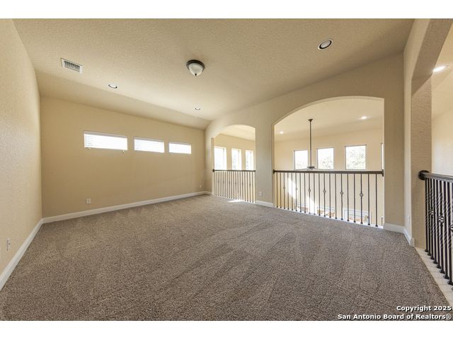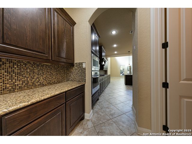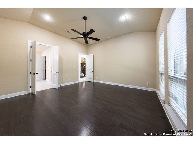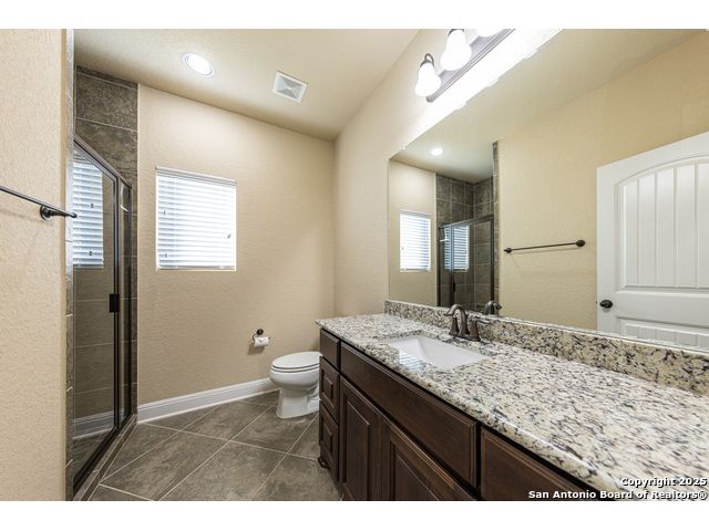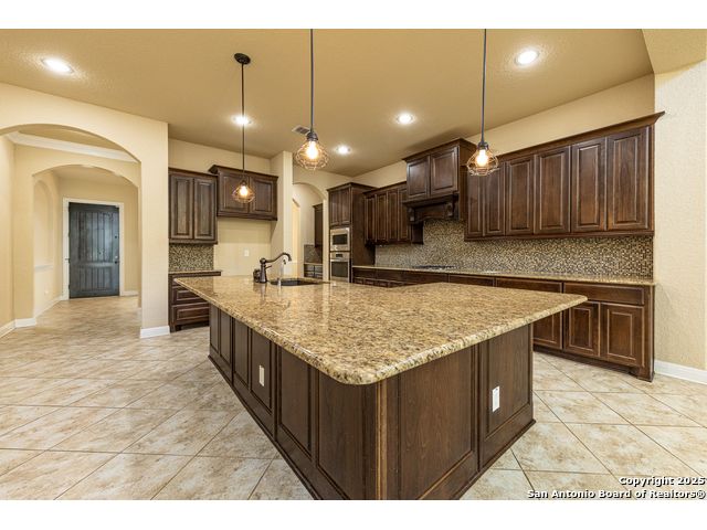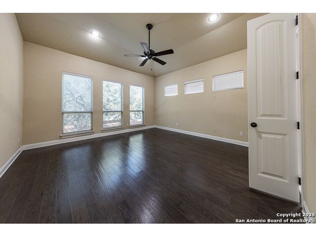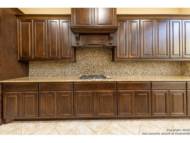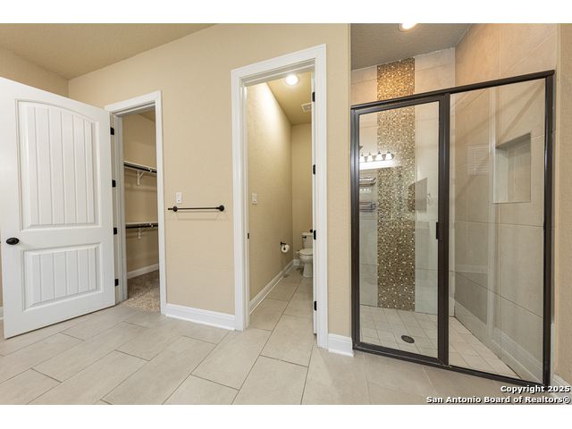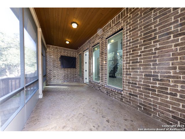 Welcome to this stunning, well-maintained home with soaring 20ft ceilings in the desirable Fallbrook community in Boerne with resort-style amenities! Ideally located off I-10, you'll enjoy easy access to downtown Boerne and The Rim or La Cantera in San Antonio, all while living in a peaceful, gated neighborhood with a pool, splash zone, playground, and park for the whole family to enjoy. Step through the freshly stained front door into a grand entryway with architectural accents. Wood and tile flooring throughout the first floor offer cleaning convenience and durability. The massive Chef's kitchen is a standout, featuring beautifully stained wood cabinets, stainless steel appliances, a huge island and granite countertops complemented by a warm mosaic tile backsplash. With gas cooking, a large walk-in pantry and tons of storage, this space is perfectly designed for beauty and function - making meal prep or entertaining a breeze. The kitchen opens to your large, inviting living room with massive ceilings. Just outside, your living space extends to a beautiful screened-in patio with a TV, a stained wood ceiling and stamped concrete flooring for an elegant touch that feels and looks like stone - perfect for alfresco living. Better yet - leave your worries (and your mower) elsewhere with your xeriscaped backyard featuring high-end turf with gravel accents giving you a green, water-efficient oasis to enjoy year-round under the shade of your mature oaks. Back inside, the primary suite on the first floor features a spa-like bath with dual sinks, tons of counter space, a large soaking tub, and a beautifully tiled shower along with a massive walk-in closet. Upstairs, you're greeted by a huge loft accented by decorative iron spindle railings for an elegant and versatile space with lots of natural light that could be perfect as a second living area or a game room. Just off the loft awaits a reading nook, a full bathroom and a large secondary bedroom (which could easily be converted into a second private suite, if preferred). The other two bedrooms are generous in size with tall ceilings, larger closets and a jack and jill bathroom with two private sinks. Additional upgrades include a water softener system and a security system with cameras. The home even has smart auto-locks on the front door and garage door for added security and peace of mind. This home's thoughtful upgrades, prime location and Fallbrook's top-tier amenities make this home an exceptional find at a great price! NOTE: The seller is willing to paint the kitchen cabinets white & the living room/kitchen walls & ceilings a lighter color if preferred by a buyer (with an acceptable offer). A mockup of white cabinets with an eggshell color paint is shown in the photos for reference.