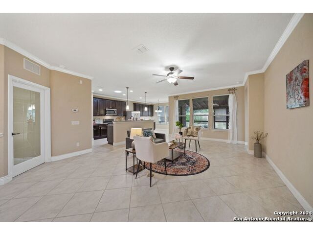 Welcome to your next chapter of comfort and connection in this delightful one-story home, nestled in an amenity-rich active adult neighborhood. A new HVAC was added in July 2025 ready for new owners! No steps into the front or out the back door! Step inside to find an open floor plan with oversized tile flooring in the common areas, combining elegance and easy maintenance including solar tubes for added natural light. The heart of the home is the kitchen, featuring sleek stainless steel appliances, granite countertops, and ample space for culinary creativity. A dedicated room with lots of natural sunlight makes the perfect craft room. This four sides brick home also features a covered patio for afternoon tea or morning coffee, a Lifesource whole home water filtration system and Maytag washer, dryer and refrigerator. This home is truly move in ready. Don't hesitate, Hill Country Retreat is ready to welcome you to this new chapter in your life!