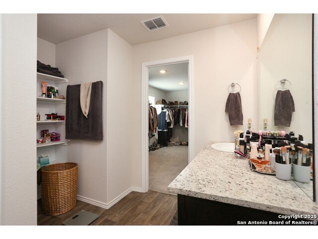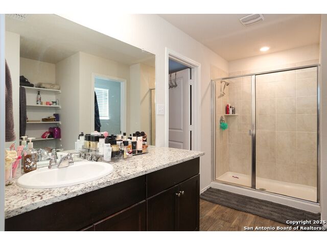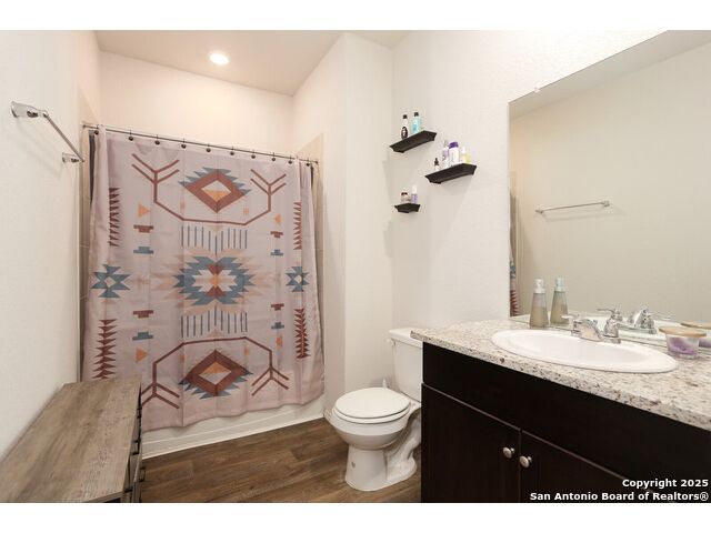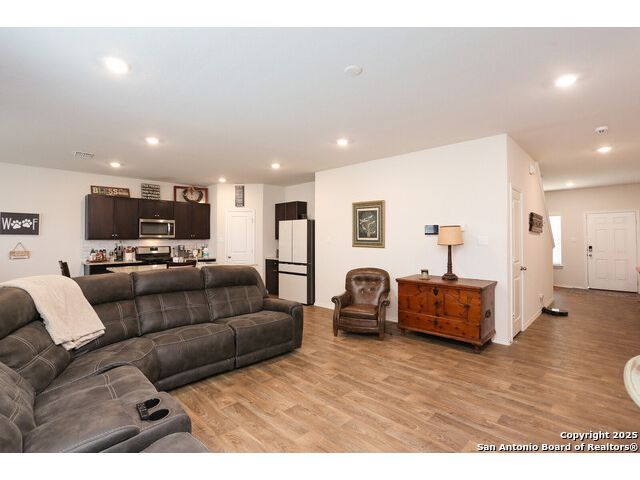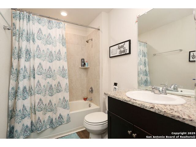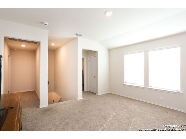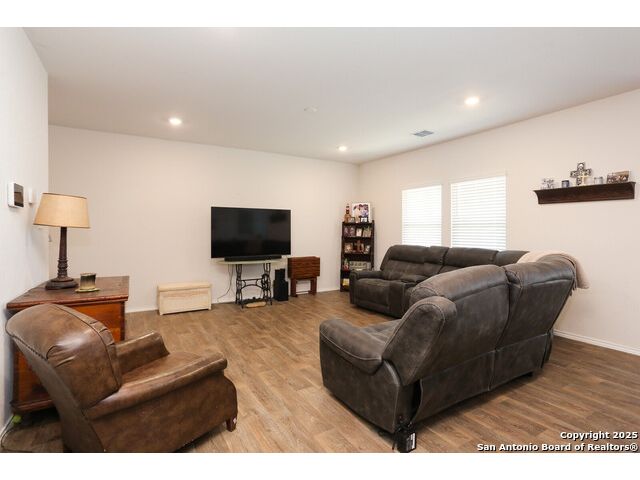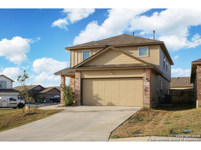 THIS BEAUTIFUL TWO-STORY HOME NOW AVAILABLE IN THE LINKS at RIVER BEND!-- THIS PARTICULAR NICOLE PLAN HAS A NOTICEABLE ADVANTAGE! WHEN PARKING IS A PREMIUM IN THIS NEIGHBORHOOD, THIS LARGE CORNER LOT (possibly one of the largest in the neighborhood) PROVIDES A LITTLE EXTRA SPACE ALONG TWO STREETS FOR THOSE EXTRA VEHICLES & POTENTAIL GATHERINGS--LOTS OF SPACE IN THIS HOME INCLUDEDING THE DOWNSTAIRS BEDROOM WITH A FULL BATH ALONG WITH THE OPEN LIVING/DINING COMBO--THE KITCHEN INCLUDES GRANITE COUNTERTOPS, A SPACIOUS PANTRY, AND SOME BEAUTIFUL TILE BACKSPLASH--BECAUSE OF THE LARGE CORNER LOT, THE BACK YARD SEEMS MORE SPACIOUS & BECOMES MORE INVITING BEHIND THE PRIVACY FENCE--THE WIDE INVITING STAIRCASE LEADS TO THE 2ND LEVEL LOFT WHICH CAN SERVE A VARIETY OF PURPOSES--THE 2ND LEVEL INCLUDES A WONDERFUL ELEVEATED VIEW OF THE GOLF COURSE ALONG WITH THE 3 REMAINING BEDROOMS--THE LARGE PRIMARY SUITE INCLUDES A WALK-IN SHOWER, WATER CLOSET, AND PLENTY OF STORAGE SHELVING--AND MUST MENTION THE EXTRA LARGE WALK-IN CLOSET PROVIDING A TON OF HANGING AND STORAGE SPACE--THE LARGE OUTSIDE LOT IS COMPLETE WITH A COVERED PATIO AND SPRINKLER SYSTEM--NEIGHBORHOOD CONTAINS WALKING/JOGGING PATHS, TENNIS COURTS, FRISBEE GOLF ALONG WITH THE GOLF COURSE AND THE WONDERFUL LEWS RESTURANT--EASY ACCESS TO HIGHWAYS, STORES, AND SAN ANTONIO.