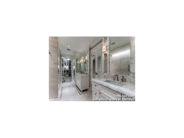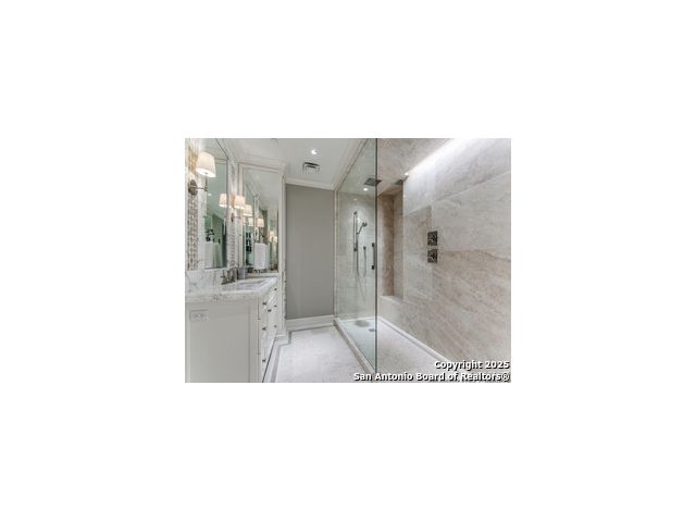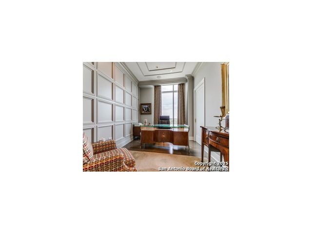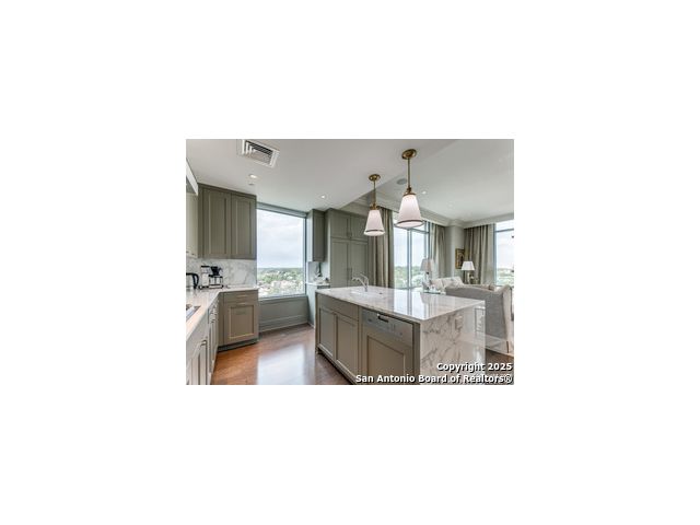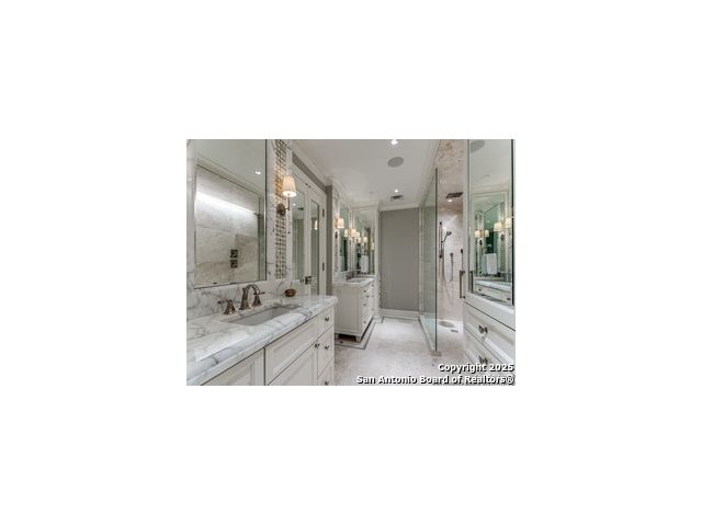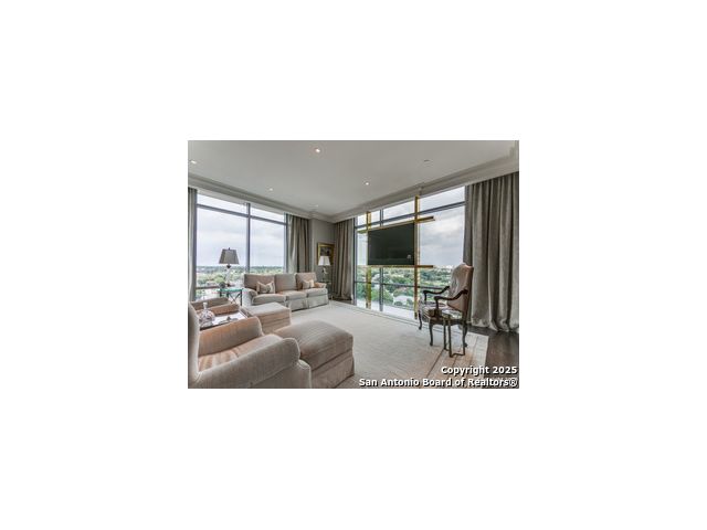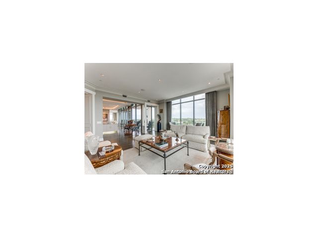 Welcome to your new sanctuary of sophistication at The Broadway in San Antonio. This luxurious penthouse suite offers an elegant combination of modern design and timeless elegance, perfect for those seeking a refined lifestyle. 4242 Broadway Unit 1001 offers an open floor plan and upon entry, you are immediately greeted by the breathtaking sunrise views to the east and stunning downtown vistas. The seamless flow from room to room creates a spacious and inviting atmosphere, perfect for both relaxation and entertaining. This magnificent penthouse boasts dual primary suites, each offering incredible views of the San Antonio Country Club Golf Course. Imagine waking up to the serene greens from one of your two private balconies - one oriented eastward for morning tranquility and the other providing sweeping downtown views. The two expansive living areas cater to your every need. The formal living room is ideal for hosting guests, while the family room off the kitchen is perfect for more intimate gatherings. Both spaces are complemented by two conveniently located half bathrooms, ensuring comfort and privacy for you and your guests. Experience the height of luxury with retractable blinds on all windows, excluding the hallway, allowing you to control the natural light to suit your mood. The bar area adjacent to the dining room is a sophisticated touch, complete with a mini refrigerator and wine cooler, perfect for entertaining. Dine in style under the cove lighting and accent spots of the elegant dining room. The family room, featuring a floating art piece for the television, adds a contemporary flair to your entertainment space. The state-of-the-art kitchen is a chef's dream, equipped with Miele and Subzero appliances, marble countertops and backsplash, and an expanded area for additional storage. The thoughtfully designed laundry area, conveniently located near the back entrance and close to the first bedroom, includes a sink and ample storage space, making household tasks a breeze. The third bedroom, currently used as an office, offers a quiet retreat for productivity. The second bedroom, one of the primary suites located on the south side, is wheelchair accessible and features a bathroom with marble countertops, double sinks, an office space within the closet area, and a charming faux fireplace for added warmth and ambiance. The first bedroom, the north-side primary suite, boasts a luxurious bathroom with marble countertops and floors, double sinks, and an extra-long counter, providing a spa-like experience every day. Discover the epitome of luxury living at The Broadway.