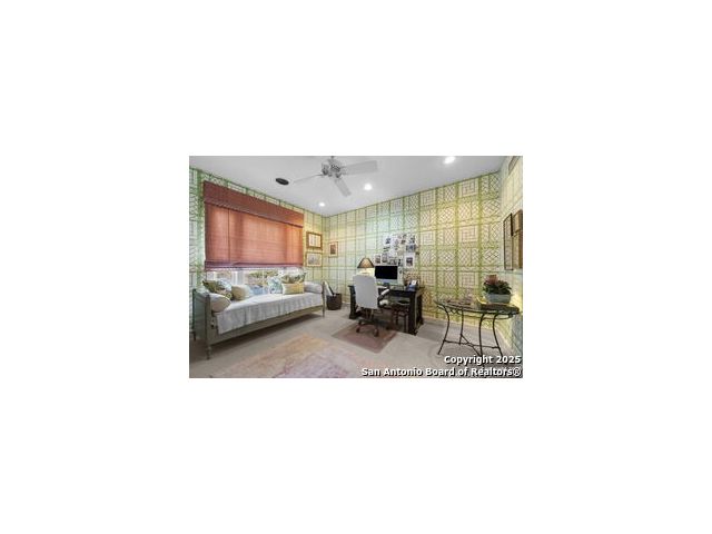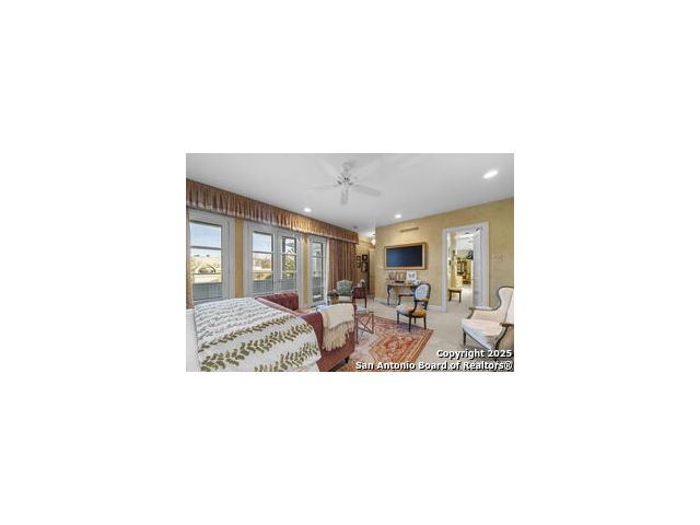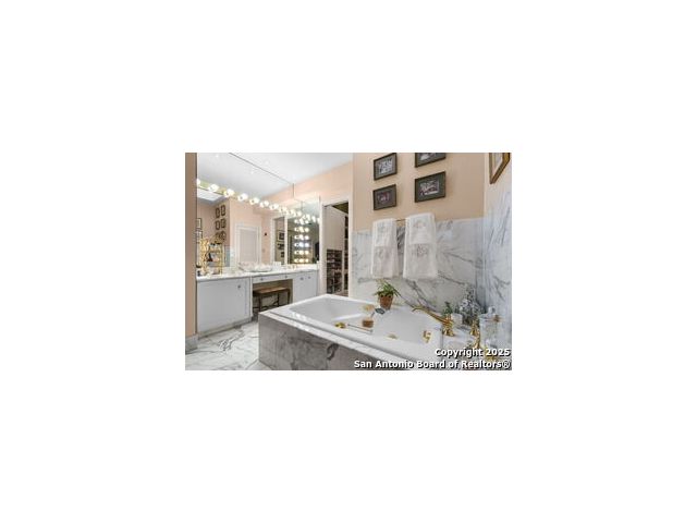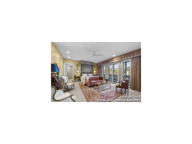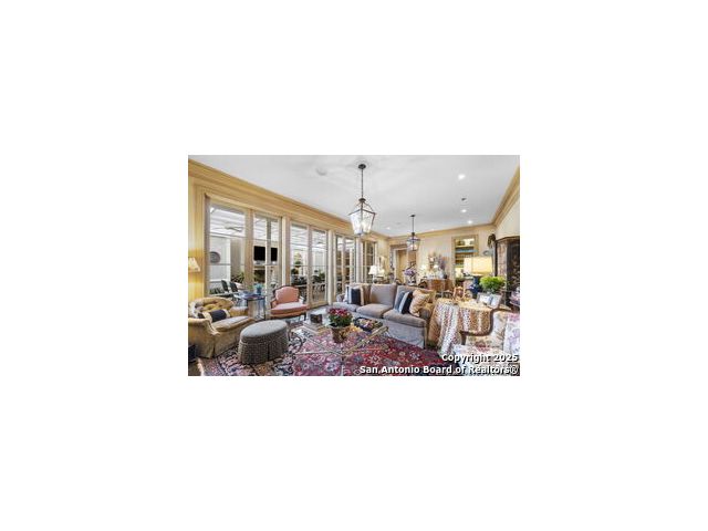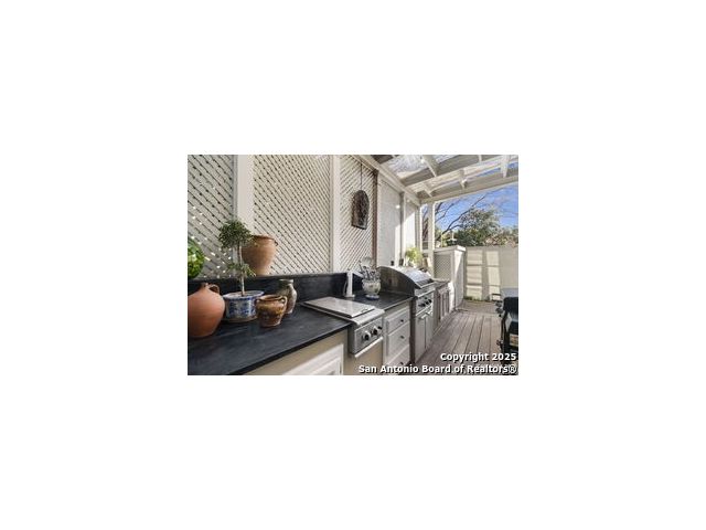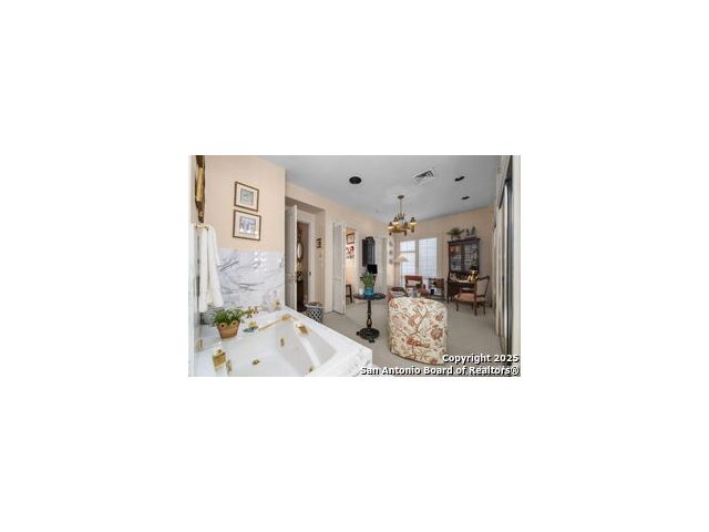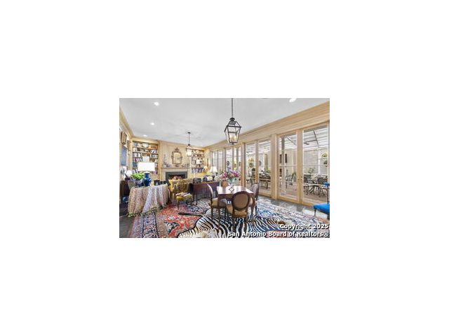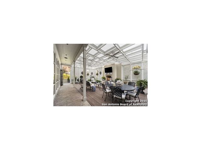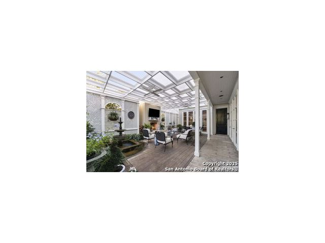 This beautiful home features a serene courtyard with a fountain, a spacious dining room, and a chef's kitchen with an outdoor kitchen. The large master suite has a sitting area, French doors to a balcony, and separate his-and-hers bathrooms with walk-in closets. There are two additional bedrooms with a shared bathroom. Storage is abundant, including a luggage closet, silver cabinet, and jewelry safe. With parking for three vehicles and a quiet, low-maintenance "lock and leave" design, this is a premier property for both relaxation and entertaining.