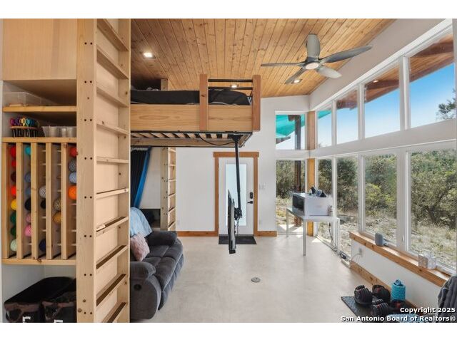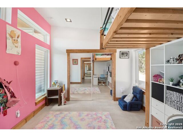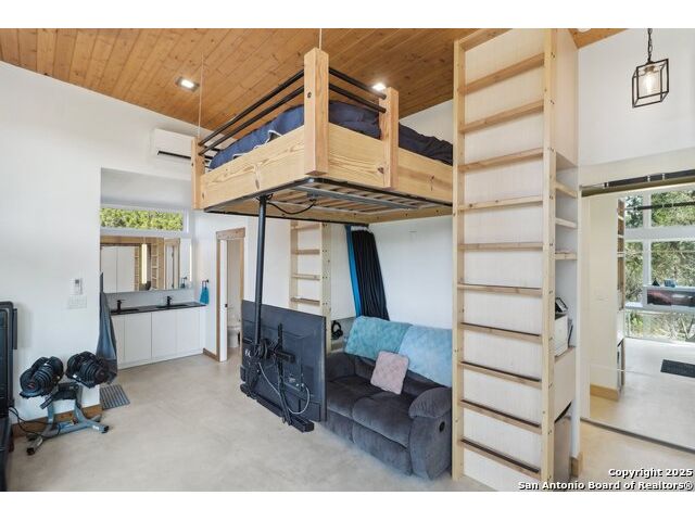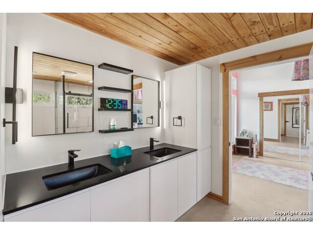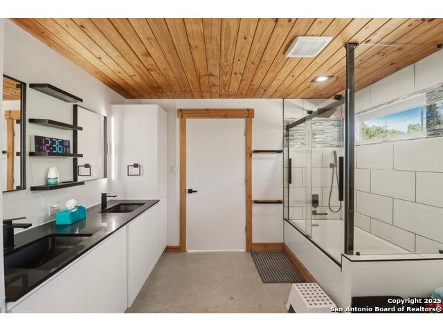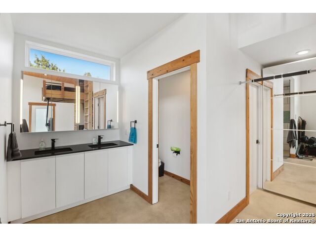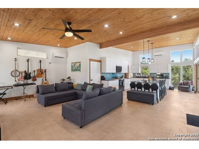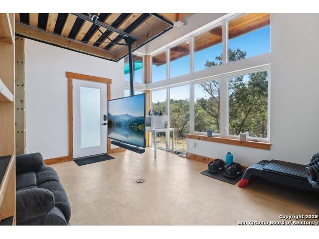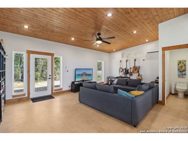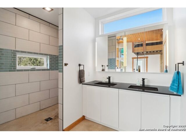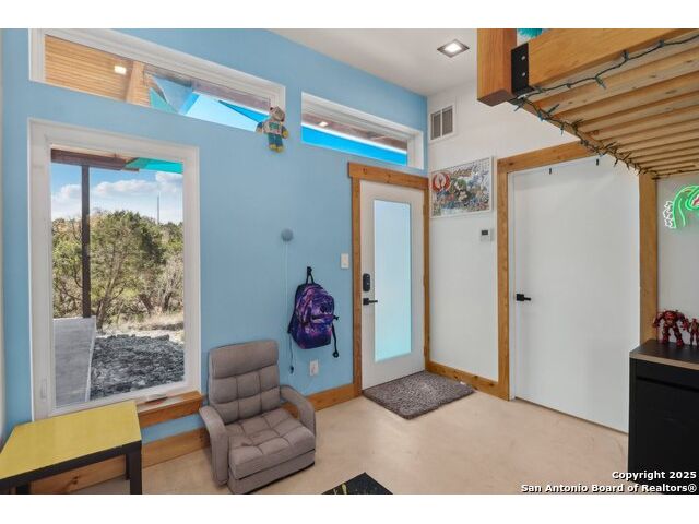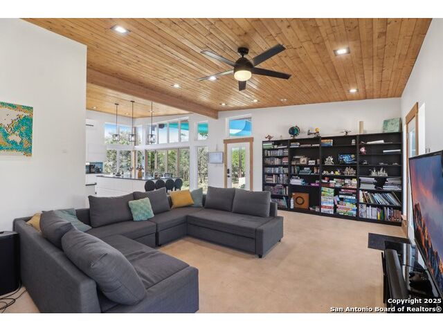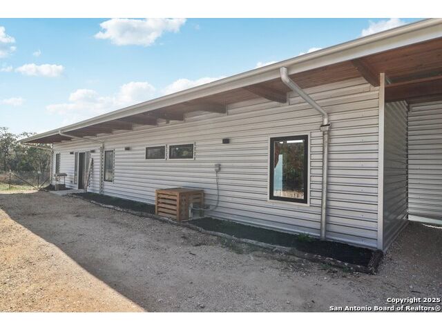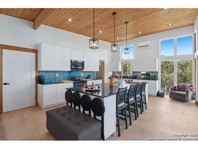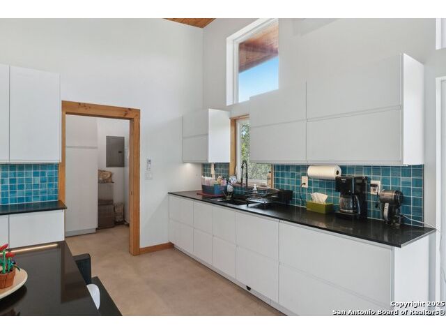 Modern Hill Country retreat * 5.05 acres in Bear Springs Ranch * Sustainable design with rainwater system & Hydroloop water recycling * Potential short sale opportunity Experience elevated Hill Country living in this contemporary 3-bedroom, 2.5-bath home set on 5.05 acres with panoramic views and no HOA. Designed for comfort and sustainability, the open floor plan showcases vaulted wood ceilings, expansive windows that frame the natural landscape, and a gourmet kitchen featuring white cabinetry, bold blue backsplash, black quartz counters, stainless steel appliances, and a large center island perfect for gathering. The private primary suite includes a spa-style bath with dual vanities, soaking tub, and separate shower, while two secondary bedrooms and a guest bath complete the interior. Eco-conscious systems include a Hydroloop water recycling setup, a 10,000-gallon rainwater catchment tank, and a 40-ft shipping container ideal for storage, workshop, or creative studio use. Outdoor living abounds with a covered patio designed for sunset views, open acreage for exploring, and breathtaking stargazing under the wide Texas sky. Located in Bear Springs Ranch, just minutes from Medina Lake, Mico, and Castroville, with easy access to Loop 1604 and Highway 90, this property combines luxury, sustainability, and Hill Country serenity. A unique opportunity for buyers seeking a modern, eco-friendly retreat with incredible value and potential.