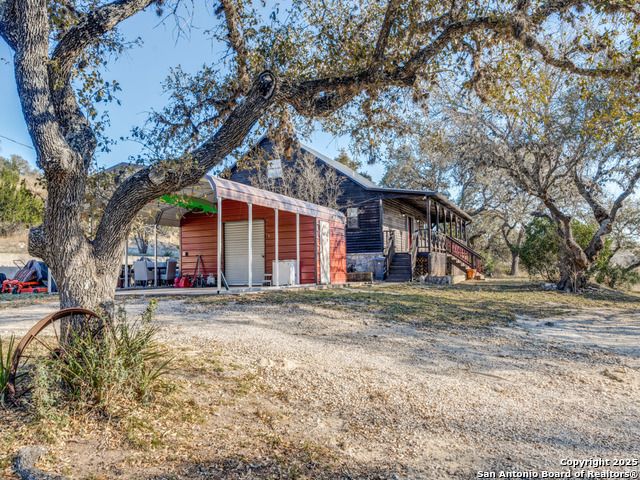 Discover the perfect blend of tranquility and convenience in this quaint Texas Hill Country home, ideally located off Sisterdale Hwy-just 25 minutes from Fredericksburg and downtown Boerne. Just 10 minutes to Luckenbach. Nestled on 3.32 fully fenced acres, this property offers unparalleled long-range views, majestic oak trees, and no HOA restrictions! Step inside this updated country home, featuring a newer roof (2017), newer HVAC system (2020), fresh paint throughout, and stylish vinyl plank flooring in the living and dining areas. The spacious kitchen boasts updated appliances, a walk-in pantry, and a picturesque window overlooking the countryside. The primary suite is a true retreat, offering a large sitting area and a renovated en-suite bathroom. A secondary bedroom and full bath downstairs provide convenience, while the upstairs bedroom offers flexible space for an office, guest suite, or game room. Outside, enjoy covered parking with a carport and storage closet, plus ample room for a chicken coop, large garden, or additional outdoor living space. Experience the peace and quiet of country living while staying close to top Hill Country destinations. When using GPS be sure to use "Whitworth Drive"...this property is off of Sisterdale Highway (FM1376)