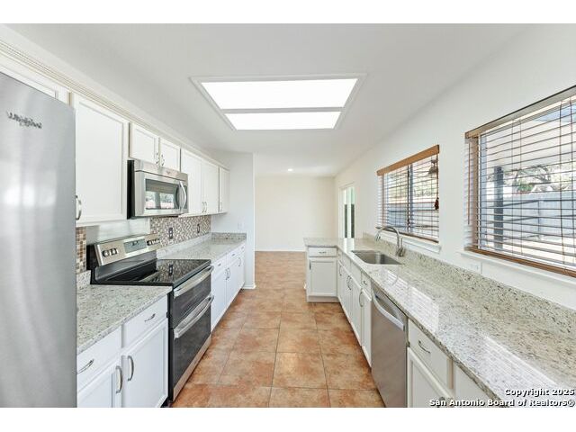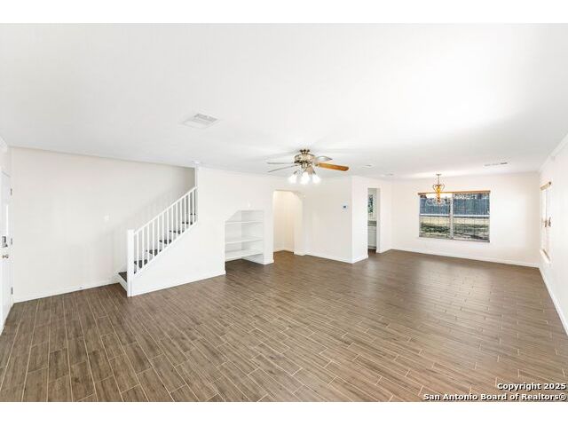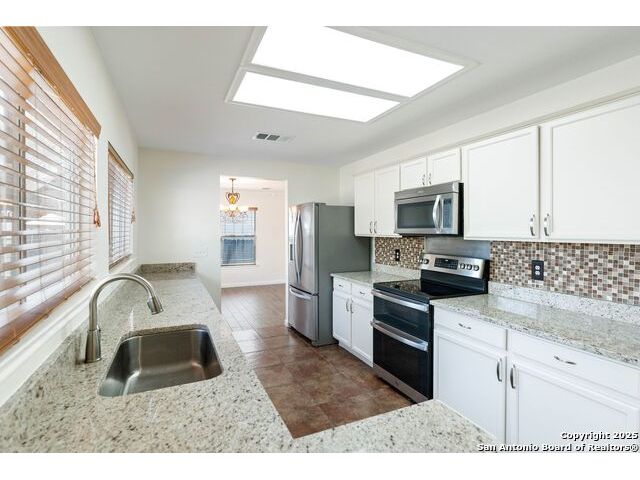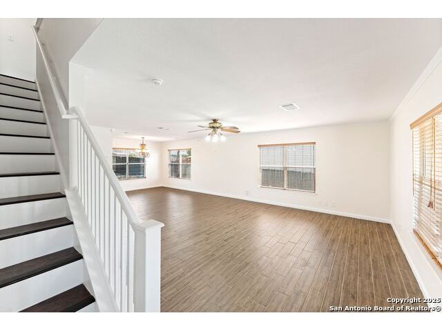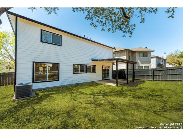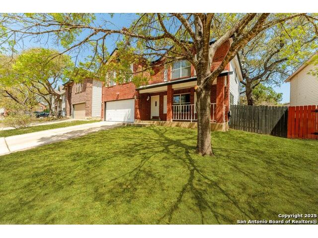 This beautiful 4-bedroom, 2.5-bathroom two-story home is move-in ready and filled with natural light throughout. All bedrooms are located upstairs and offer plenty of space, making it ideal for comfort and functionality. The kitchen features granite countertops, stainless steel appliances, and ample room for cooking and entertaining. With no carpet anywhere in the home, maintenance is a breeze and style is elevated. Step outside to enjoy a large covered patio and a spacious backyard-perfect for relaxing or hosting gatherings. The home is conveniently located near shopping options like H-E-B and Lowe's, and residents can enjoy great neighborhood amenities including a pool, sports court, and more. This home has everything you need and more!