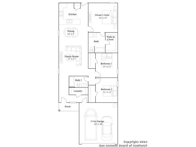 The Idlewood - This single-level home showcases a spacious open floorplan shared between the kitchen, dining area and family room for easy entertaining, along with access to an outdoor space. An owner's suite enjoys a private location in a rear corner of the home, complemented by an en-suite bathroom and walk-in closet. There are two secondary bedrooms at the front of the home, ideal for household members and overnight guests. Prices and features may vary and are subject to change. Photos are for illustrative purposes only.