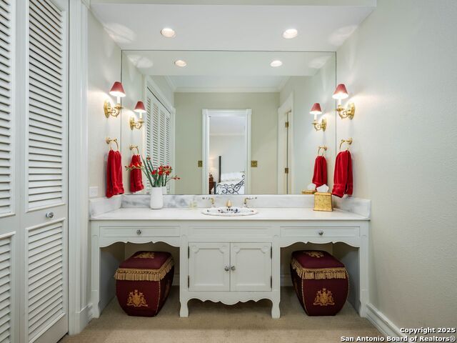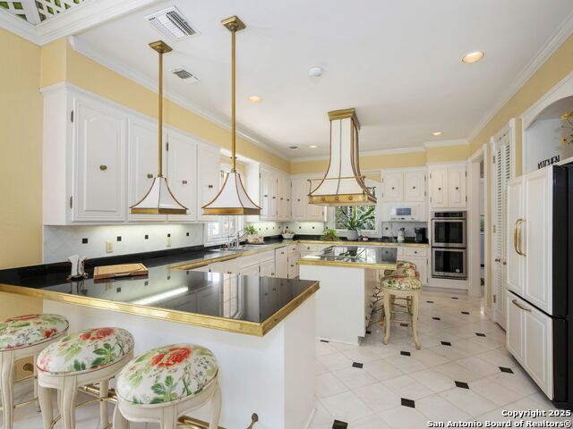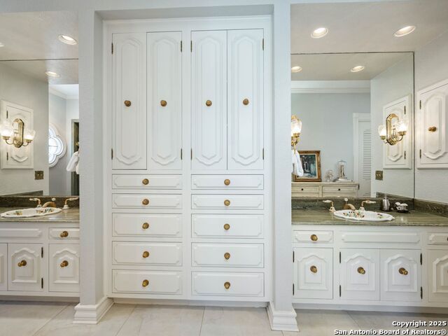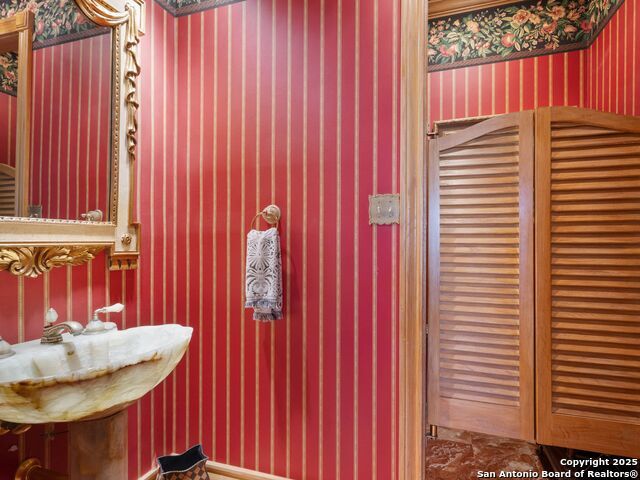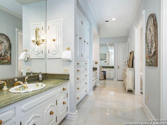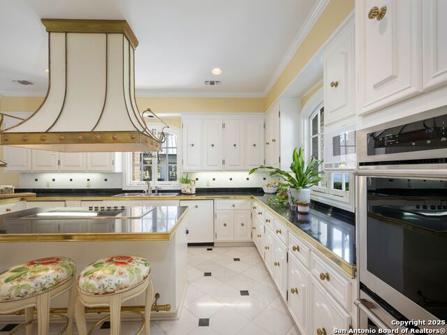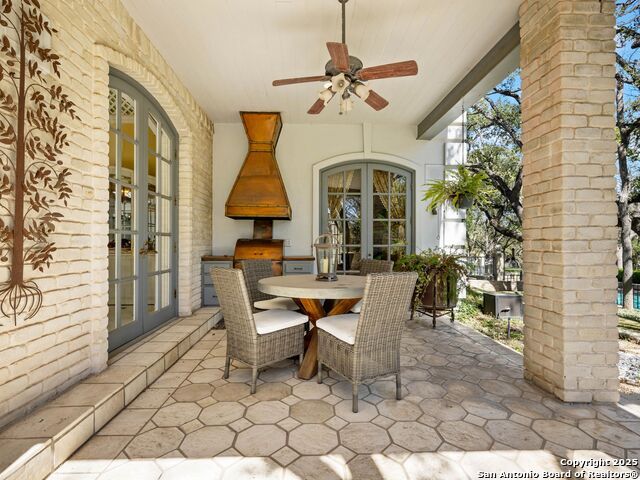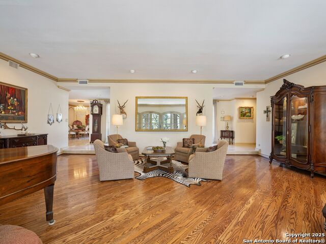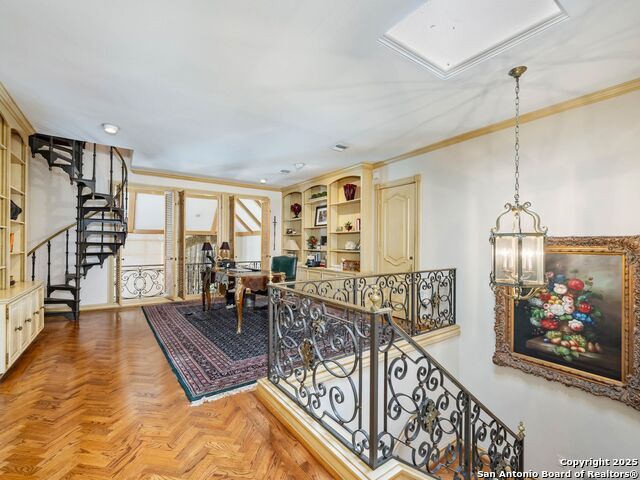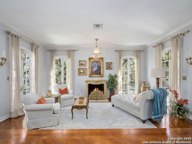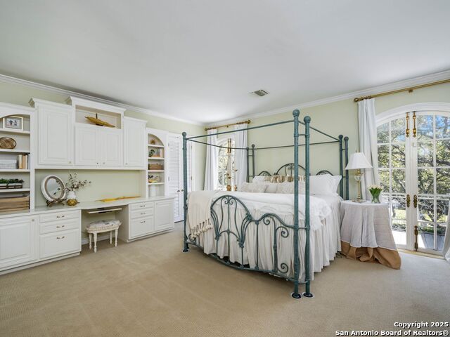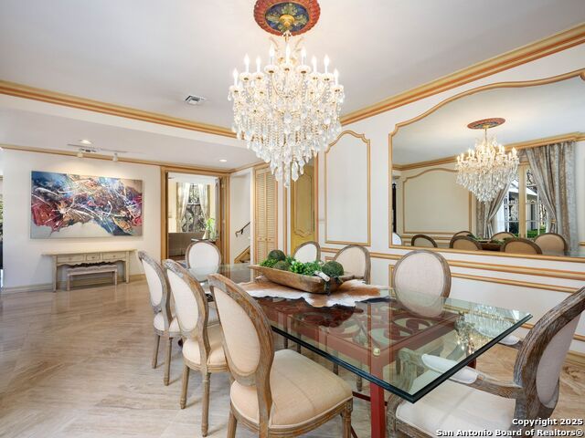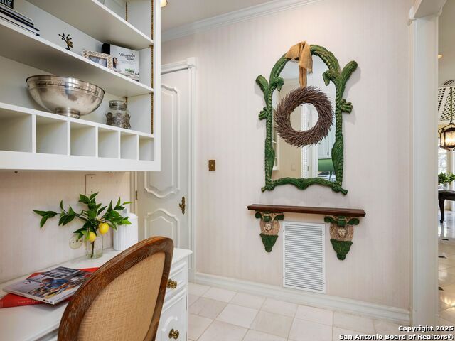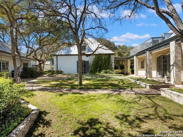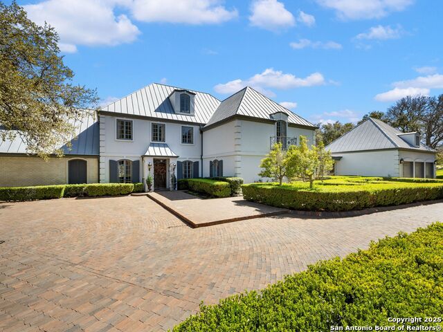 Tucked behind private gates on 6.5 acres of beautifully manicured grounds, this exceptional French-inspired estate offers a rare blend of timeless elegance and modern luxury in an unparalleled location. A winding, tree-lined drive welcomes you, leading past lush gardens and a picturesque 2.5-acre lake, setting the stage for this remarkable residence. Designed with influences from the French countryside, the home boasts soaring ceilings, graceful archways, and expansive windows that frame breathtaking views of the pool and surrounding landscape. Gleaming wood floors anchor the grand living spaces, seamlessly flowing from one room to the next. The formal dining room, illuminated by an intricate chandelier, sits adjacent to a thoughtfully designed island kitchen, perfectly positioned for both everyday living and entertaining. The private owner's wing is a true retreat, featuring a spacious suite, a cozy sitting area with a fireplace, and a remodeled spa-like bath. Throughout the home, bespoke details including preserved Sherle Wagner fixtures add a touch of timeless glamour. A richly paneled library and a stately billiards room provide additional spaces for relaxation and entertainment. Stepping outside, the estate continues to impress with an array of resort-style amenities. A tennis court, putting green, and sparkling pool with a spa create an entertainer's paradise, while a separate guest house complete with a built-in Teppanyaki grill offers a private sanctuary for visitors. A greenhouse and meticulously maintained gardens further enhance the property's serene ambiance. Offering grand proportions yet an inviting warmth, this estate is a rare find, secluded yet conveniently located just minutes from I-10, embodying the perfect harmony of refined sophistication and natural beauty.