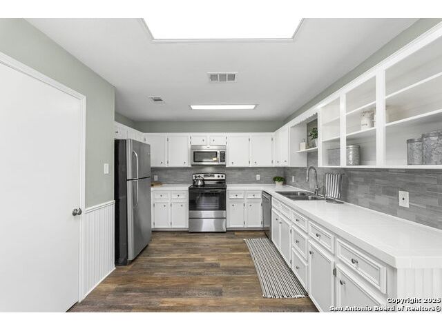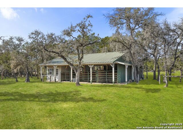 There's Hill Country living. And then there's waking up to your own bend in Hondo Creek, saddling your horse in your five-stall barn, and realizing you'll never want to leave these 10 acres.The water changes everything: Hondo Creek doesn't just border this property-it defines it. Your private dock provides direct access for fishing at sunrise, kayaking through limestone bluffs, or simply cooling off on a July afternoon. This is living water, the kind that draws wildlife at dusk and creates that signature Hill Country sound you can't replicate anywhere else. The main residence is pure Hill Country elegance: Recently remodeled 2,500 square feet with four bedrooms and two-and-a-half baths. The main-level owner's suite is your private refuge-completely reimagined ensuite with freestanding soaking tub, oversized walk-in shower, and creek views that make mornings feel like a reset. Three additional bedrooms upstairs handle guests, family, or weekend overflow with ease. The open-concept heart of the home flows seamlessly-gourmet kitchen with stainless appliances and statement backsplash, into dining, into living-all designed around gathering and that effortless Hill Country entertaining style. And here's the kicker: the home can convey fully furnished with thoughtfully curated pieces that complement the property's rustic sophistication. Turnkey doesn't usually mean this elegant. Outdoor living is the main event: A sprawling pavilion overlooks the creek-outfitted with outdoor kitchen and firepit-where dinner tastes better and conversations last longer. This is where you'll spend most of your time once you realize air conditioning is optional when you have views like this and a breeze coming off the water. For the equestrian or the aspiring one: Five-stall barn with tack room. Round pen for training. Hay barn for storage. And 10+ acres of varied terrain perfect for riding, whether you're seasoned or just getting started. The infrastructure is here; you just bring the horses. The land itself tells the story: Cobblestone bridges connect hand-cut trails that wind through oak mottes and open meadows. Elevated views reveal layers of Hill Country ridgelines. This isn't manicured suburban landscaping-this is authentic Texas terrain that's been thoughtfully enhanced, not overdeveloped. Complete self-sufficiency: Private well and septic system mean you're not beholden to utility schedules or restrictions. Solar-ready if you want to take it further. This property functions independently while remaining easily accessible to Bandera, Utopia, and everything the Hill Country offers. This is the rare trifecta: Legitimate waterfront on a creek that flows. Serious acreage with equestrian infrastructure. A completely remodeled residence that's ready today. Whether you're searching for your Hill Country forever home, a high-end weekend retreat, or an investment property with short-term rental potential in one of Texas' most desirable corridors, this estate delivers what most properties only promise: privacy, water, land, and a lifestyle that feels a world away while being entirely accessible. The creek is calling. The barn is waiting. The only question is whether you're ready to answer.