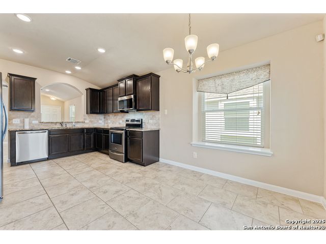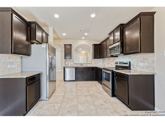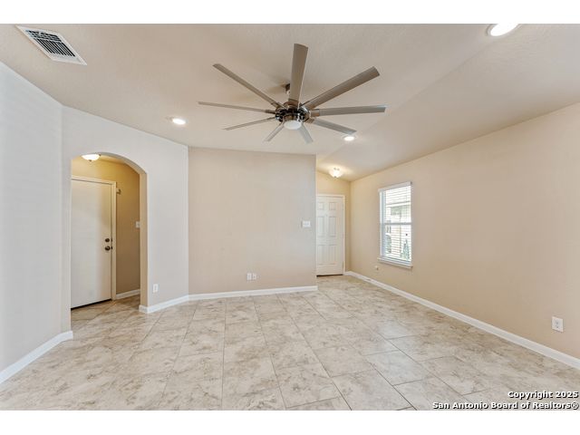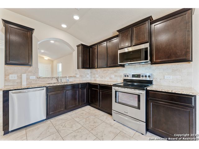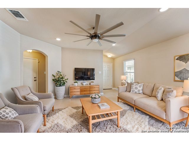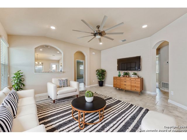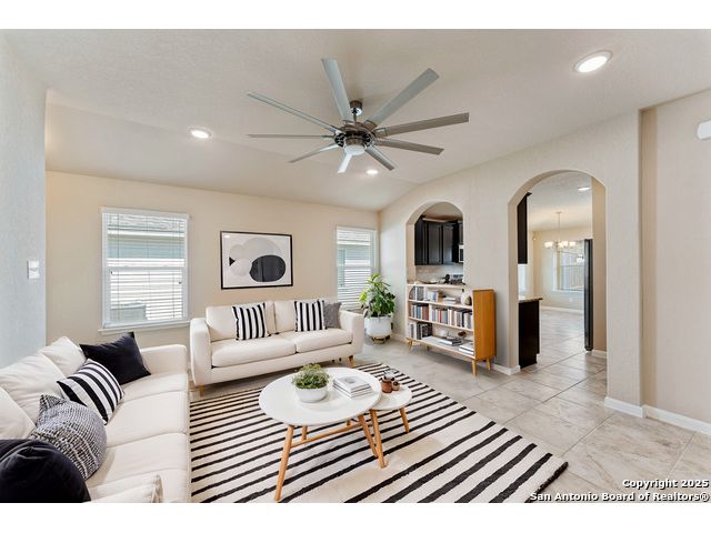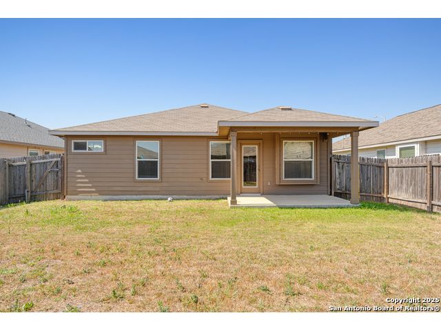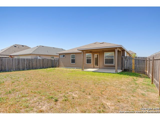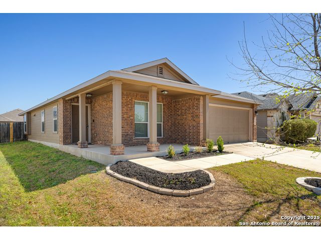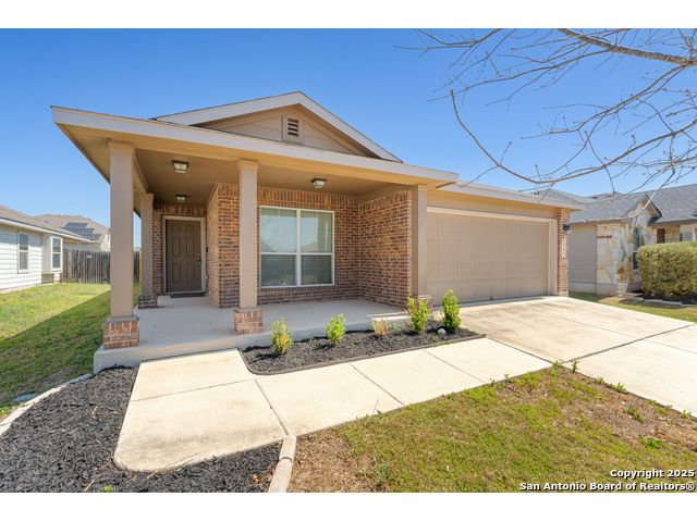 Welcome to 2297 Olive Hill, nestled in the desirable Avery Park community of New Braunfels. This beautifully maintained home offers 3 spacious bedrooms and 2 full bathrooms with an inviting, open-concept layout. A charming, oversized front porch leads you into a bright living space that seamlessly connects to the kitchen, featuring luxury-finished brown cabinets, granite countertops, and sleek tile flooring throughout the main areas. 9-foot ceilings enhance the sense of space, while the private primary suite includes a generous walk-in closet for added comfort. Step outside to a well-sized backyard complete with a privacy fence-perfect for relaxing or entertaining. Enjoy the added convenience of being just minutes from the neighborhood pool, park, and community school. This home blends comfort, style, and location in one exceptional package!