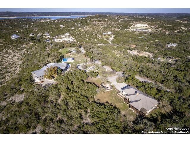 Luxury Canyon Lake Hill Top multi-home compound. Two separate dwellings 2451 AND 2471 Village Oak, including an undeveloped lot! The main home has sophisticated high end design finishes throughout, and is the epitome of luxury living. The property sits atop Canyon Lake to capture the panoramic views of the pristine blue waters. The additional 3 bedroom 2 bath dwelling has miles of Hill Country views. Situated behind gates, this property offers not only privacy but multiple living situations. The main house is a lesson in design with Du Chateau herringbone flooring, Arteriors lighting, Waterstone fixtures, Rocky Mountain Hardware, and exceptional finishes found in high end resorts. The main home has an elevator that takes you from the garage up to the kitchen. This unrestricted property has many possibilities that could include vacation rentals, or keep it all to yourself!