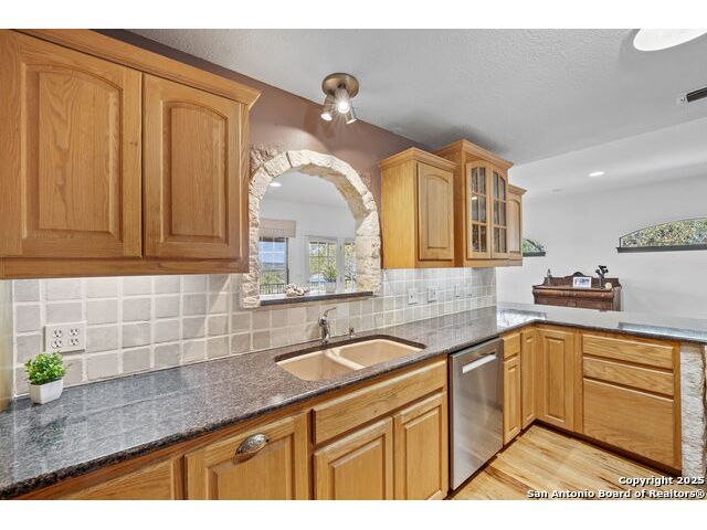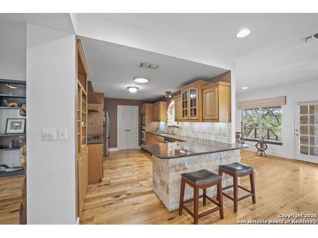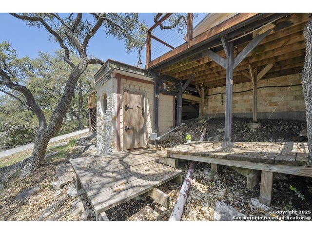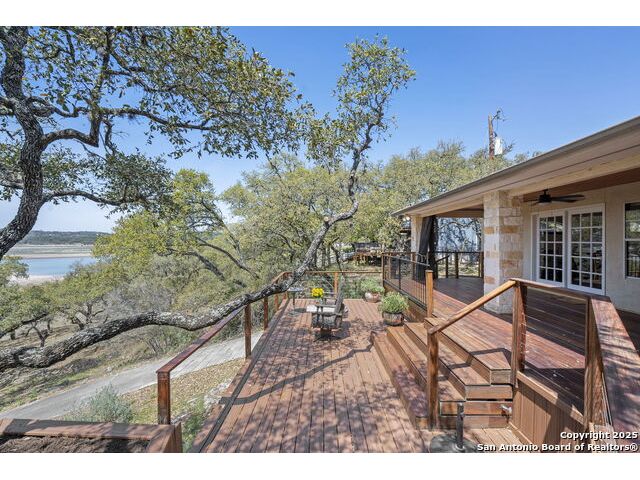 Lakefront Paradise with 135ft of Waterfront Access! Nestled just 20 minutes from New Braunfels and Bulverde, and a short drive to San Antonio and Austin, this stunning Canyon Lake home offers breathtaking lake views and direct water access. Step onto the beautifully manicured path through oak trees to enjoy serenity and recreation right at your doorstep. Originally built in 1982 and expanded in 2002, this 2,270 sqft home features soaring ceilings, a cozy wood-burning fireplace, custom built-ins, and large windows framing picturesque views. The gourmet kitchen boasts granite countertops and a lake-view sink. The primary suite offers floor-to-ceiling windows, a spa-like bath, and a California-style closet. Guest bedrooms include a flexible home office with ensuite bath. Bonus space alert: A finished attic adds 731+ sqft with built-in beds and hidden storage, perfect for extra guests or a private retreat. Seize the opportunity to own a true waterfront home at a fantastic value! With 135 feet of direct water access, this is your chance to enjoy lakefront living at an unbeatable price. As water levels rise, the potential for increased equity makes this the perfect time to buy. Step outside to a multi-level deck with privacy curtains, stunning views, and a sauna for relaxation. This property features 86 professionally trimmed oak trees, enhancing beauty and shade. Enjoy easy access to Canyon Lake's recreational activities and a peaceful lakeside lifestyle. Schedule a tour today and make this dream home yours!