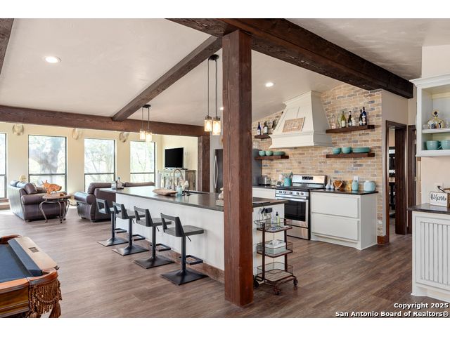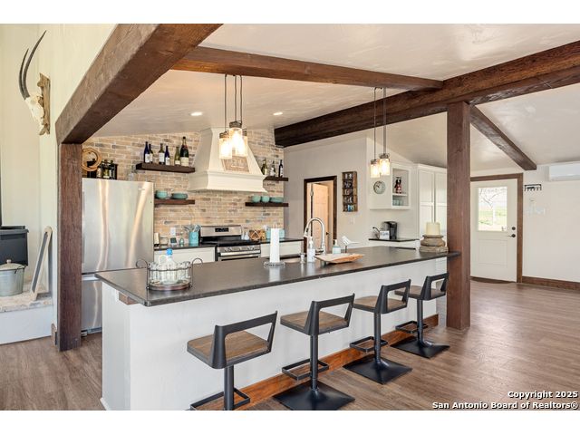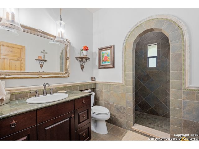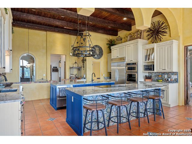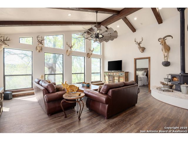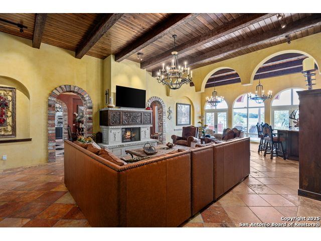 **Luxury Defined: An Oasis of Comfort and Tranquility in the Heart of the Texas Hill Country** Nestled amidst the pristine beauty of Pipe Creek, Texas, 4198 Bear Springs Road presents an extraordinary estate where luxury and serenity intertwine. This sprawling compound encompasses an opulent 9,842 square foot main home, a 1,850 square foot guest home, a 1,375 square foot garage apartment, and a one-bedroom guest casita, all harmoniously situated on a approximately 114-acres. The property also features a 2,400 square foot barn with 575 square feet of enclosed workshop. A covered 1,000 square foot pole barn serves as additional equipment storage and houses a technologically advanced Reverse Osmosis and water softener system with 1,000 gallons of treated water available to the improvements. Indulge in the tranquility of a private live spring-fed creek and a picturesque pond, while open pastures provide ample space for exploration and recreation. The grandeur of nature unfolds before your eyes, creating a serene sanctuary where you can escape the hustle and bustle of everyday life and relax in your private oasis. Within the main home, prepare to be awestruck by a 1,200 square foot exercise haven complete with a rejuvenating swim spa and sauna. Savor the ambiance of a climate-controlled wine room capable of holding over 1,000 bottles, the perfect setting for hosting sophisticated gatherings. Let the entertainment flow freely in the grand theater room, game room, and entertainment room, while ample storage ensures a clutter-free abode. Exceptional craftsmanship is evident throughout the home, from its granite countertops to the artisan brick inlaid arched entry ceiling. The three 42-seer geothermal air handling units maintain a perfect indoor climate year-round, ensuring optimal comfort and energy efficiency. Whether you entertain family, friends, or esteemed guests, this estate offers an unparalleled retreat where everyone can find their own sanctuary. The stocked pond teeming with Florida strain bass, blue-gill perch, and minnows invites avid anglers and kiddo's alike to cast their lines. Conveniently located near Boerne, Bandera, Hondo, and under 50 minutes from the San Antonio International Airport, this rare property offers the perfect balance of seclusion and accessibility. Discover the epitome of luxury and experience the tranquility that only 4198 Bear Springs Road can provide.
