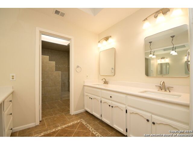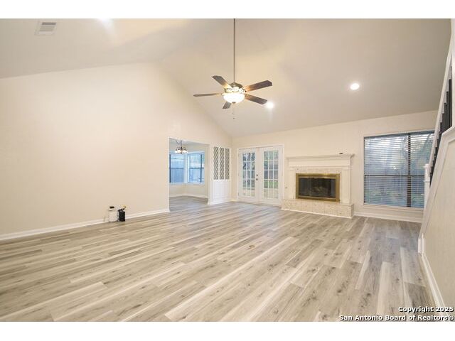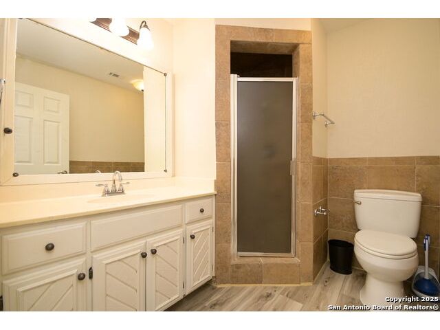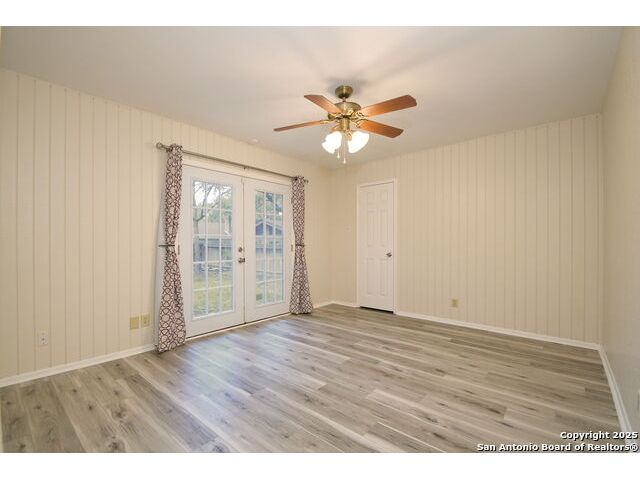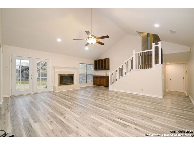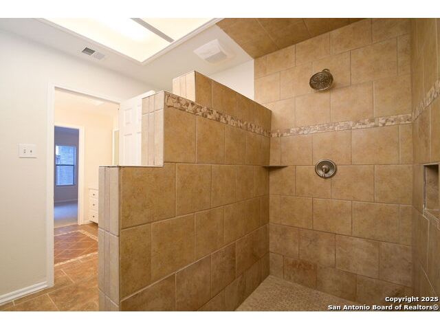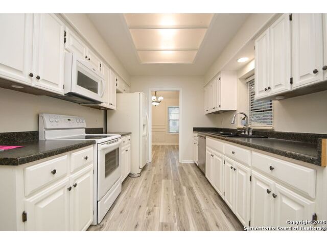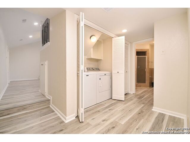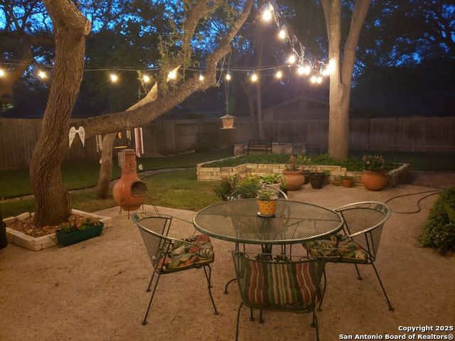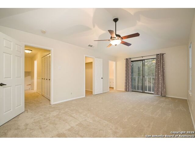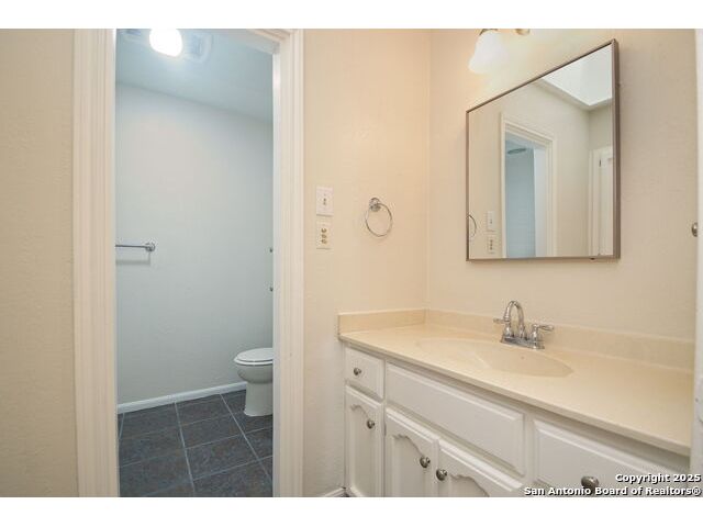 Do not miss the chance to view this home in the highly desirable Hunters Creek neighborhood! Walk into this lovely, newly updated home with 4 bedrooms and a front office! Updates include new flooring, new carpet, bathroom lighting, new paint, retexture and paint of ceiling, new water heater(with existing heat pump), new banister, and insulation from 2023. Upon walking in you will be greeted by a charming living room, a kitchen with cabinet space and appliances ready to use, plus a view of the spacious backyard. Entertain guests with the dining room or wet bar. Downstairs bedroom enjoys backyard access, full bathroom, and proximity to washer/dryer plus 2 car garage. Master bedroom enjoys a walk in closet, large bathroom with double vanity, access to a balcony, and room for relaxing. Neighborhood offers a greenbelt, pool, clubhouse, and tennis courts. Nearby access to 410, 1604, I-10, and Wurzbach parkway. Nearby access to parks and trails include Hardberger Park and Salado Creek Greenway. Nearby shopping/entertainment includes Huebner Oaks, Rim/La Cantera, The Alon ;HEB and Neighborhood Walmart both 5 or less minutes away from neighborhood. Large employers in the area include HEB, USAA, and Camp Bullis. In addition to all updates, the fridge, washer, and dryer will be staying! Ring video cameras will stay as added security for the buyer (front door, driveway, back patio, master room balcony). Voluntary HOA!