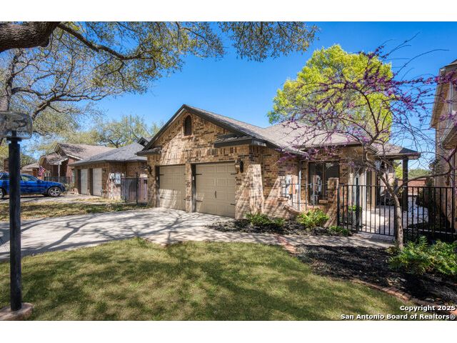 Stunning garden home in the Kirkwood subdivision offers exquisite upgrades. This 2 bedroom, 2 bath garden home is nestled among mature trees and lovely gardens. It is ideally located near Landa Park, shopping, schools and medical facilities. Jan. 31, 2025, a new roof and new skylights were added. The product is NEX Rubberized Asphalt Vista AR w/ a class 4 impact rating. The owner spared no expense and will provide all details and paid receipts. Warranty is transferrable. Added features include 12 x 24 Italian Porcelain flooring in the kitchen and laundry room, stone flooring in both bathrooms, Pela windows throughout the house, kitchen has been updated w/a farmers sink including sliding inserts, and a circular chrome vent-a-hood over the cooktop, and glass tile backsplash, as well as in the laundry room. Classic and modern chandeliers have been added throughout, and the chandelier in the primary bedroom came from and Chateau in France. Additionally, there are wall to ceiling built-in bookcases in the family room, along with updated fixtures. The pictures tell the complete story.