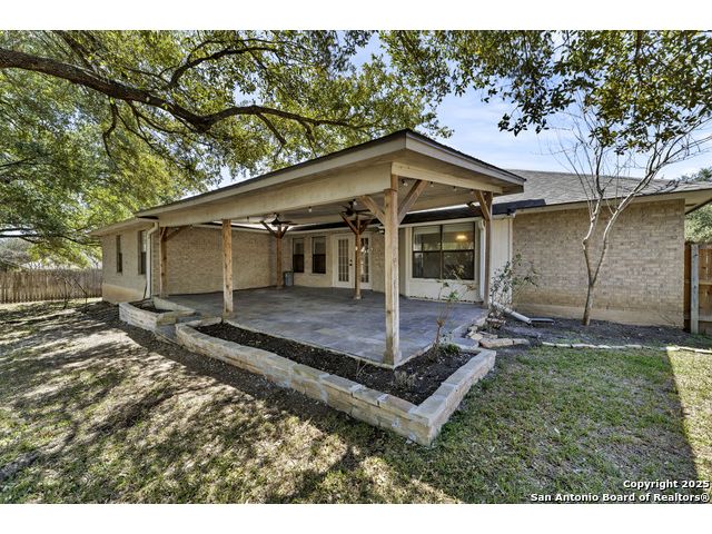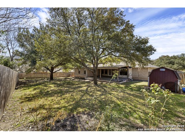 ONE STORY BRICK HOME IN SOUTH BANK! 4 BEDROOMS, 2 BATHROOMS, 2 CAR GARAGE, 2 LIVING AREAS, 2 DINING AREAS, LARGE LAWN, SPRINKLER SYSTEM, XERISCAPED, FENCED, COVERED BACK PORCH, STORAGE SHED, HUGE ISLAND KITCHEN, WALK IN PANTRY AND LAUNDRY COMBO, BEAUTIFUL ENTRY WITH LIVING AREA OR STUDY TO RIGHT AND DINING TO THE LEFT LEADING TO FAMILY ROOM WITH FIREPALCE. BUILT IN BOOK CASES, HUGE MASTER BEDROOM W DOUBLE VANITY, SEPERATE GARDEN TUB AND SHOWER. BEDROOMS 2-4 ARE GOOD SIZE, ALL WITH WALK IN CLOSETS. SOUTH BANK HAS A SUPERIOR AMENITY CENTER WITH A POOL, CLUB HOUSE,TENNIS COURTS, AND PLAY GROUND. IN ADDITION, THEY HAVE A RIVER PARK WITH ACCESS TO THE GUADALUPE RIVER FOR SWIMMING, FISHING AND KAYAKING.