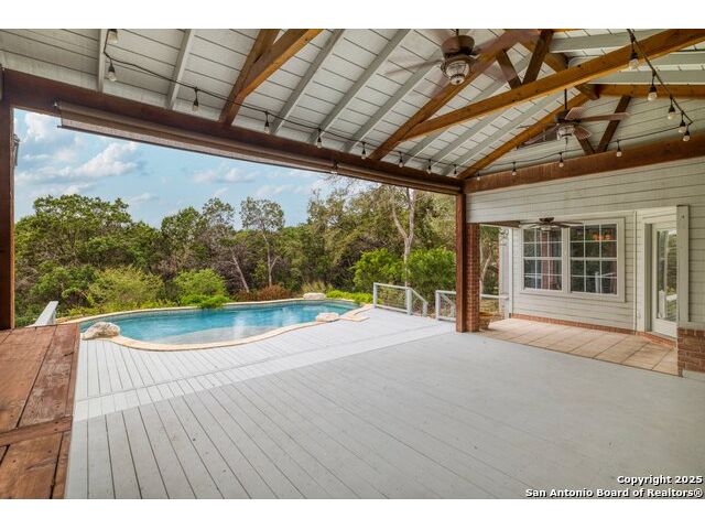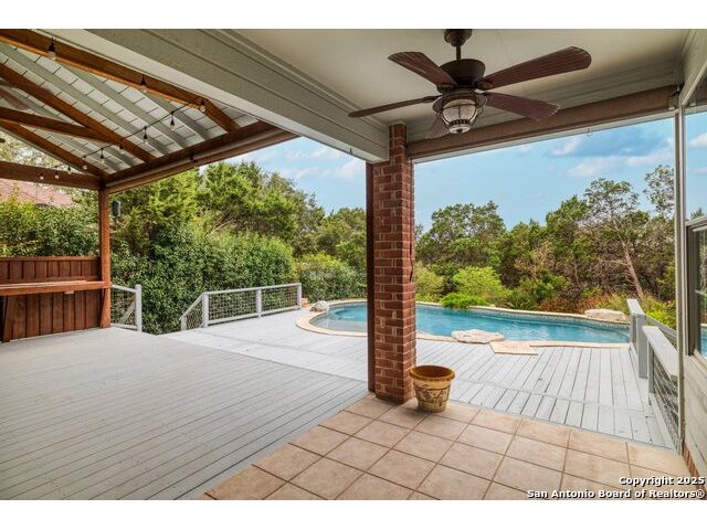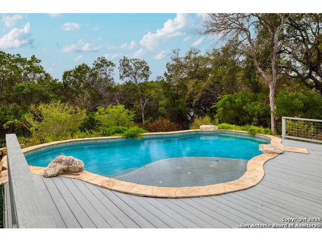 Stunning home with a pool located in New Braunfels, one of the fastest growing cities in Texas! Located in the highly sought after Mission Hills neighborhood. 3 bedrooms, 2 1/2 baths, 2 living areas, dedicated dining room, 2 car garage, backs up to green space, private yard, massive deck and beautiful sparking pool! This property has it all, location, space, privacy and a pool. Recently remodeled kitchen with breakfast area and eat-in island. Stainless steel appliances. Dedicated laundry room with washer/dr