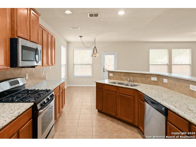 Nestled in the sought-after Riverstone of Alamo Ranch community, this well-maintained 2,704 sq. ft. home offers a perfect blend of space and comfort. Featuring two living areas, a versatile game room, and four generously sized bedrooms, this home is designed for both relaxation and entertaining. The large primary suite is a true retreat, boasting a separate tub and shower, dual vanities, and two walk-in closets for ample storage. Recent updates include fresh interior paint and brand-new carpet, giving the home a modern and inviting feel. The community offers fantastic amenities, including a pool and park, while the prime location provides easy access to shopping, dining, and major roadways. Don't miss the opportunity to make this beautiful home yours-schedule a showing today!