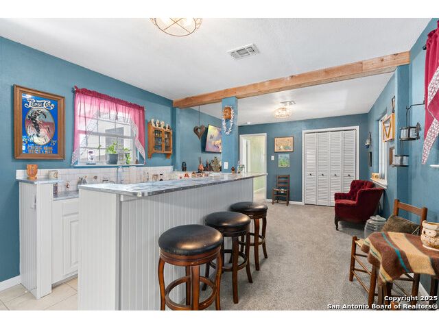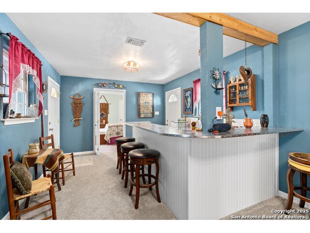 Adorable home located in established subdivision with access to walking and horseback trails leading to the shores of Canyon Lake in the beautiful Texas Hill Country! Community pool w/ family area as well! This home makes a great full time residence or it could be an incredible short term rental. Investors dream home with many remodel features already complete. Very unique design! Fireplace in master bedroom boast lovely stonework and gives you a cozy, comfortable vibe as soon as you enter the room. Third bedroom currently used as a craft room with its own entrance to back deck! 2 nice size buildings that could easily be transformed into additional rooms for guest, making it a great candidate for a vacation rental, in addition to huge garage. 2nd kitchen/bar area with door to the outdoor areas. This home is a must see and will not last long! Located on the north side of Canyon Lake, short drive to The Devils Backbone scenic route leading to Wimberley and many, many site seeing and park locations in the Texas Hill Country!