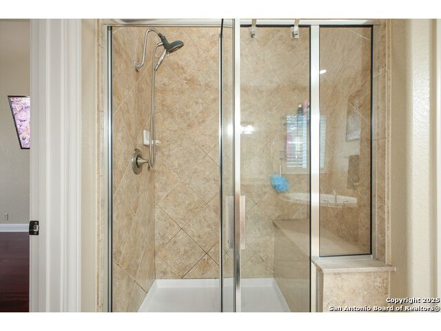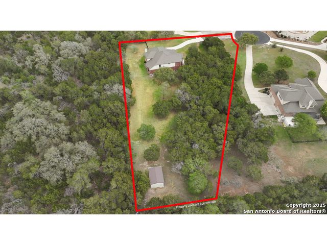 Tucked away in the exclusive gated section of Mission Hills Ranch, this stunning two-story home sits on a serene 1.6-acre lot, offering both privacy and picturesque Hill Country views. Backing to a private ranch, this home enjoys uninterrupted natural scenery with no rear neighbors. With 3,718 sqft of thoughtfully designed space, this home features a grand entry staircase, formal dining room, private office, and an expansive upstairs bonus room. A striking interior balcony enhances the open-concept design, creating a bright and inviting atmosphere. The primary suite on the main floor is a true retreat, while four additional bedrooms upstairs provide ample space for family and guests. Outside, the covered patio invites you to relax and enjoy the tranquil setting. A three-car side-entry garage adds both convenience and curb appeal. This home has been meticulously maintained and extensively upgraded, including a new metal roof (2020), multiple HVAC system updates (2019-2023), a radiant barrier for energy efficiency, and a whole-home ultraviolet air purification system. Smart features like WiFi thermostats and security cameras enhance modern living. Recent updates also include refinished cabinetry, stylish lighting and ceiling fans, a wine fridge, fresh paint, and new outdoor enhancements such as sidewalks and a spacious metal storage shed. Enjoy the perfect blend of luxury, privacy, and convenience, all within minutes of top-rated schools, shopping, and dining. Don't miss your chance to own this exceptional home in the heart of Mission Hills Ranch!