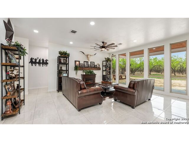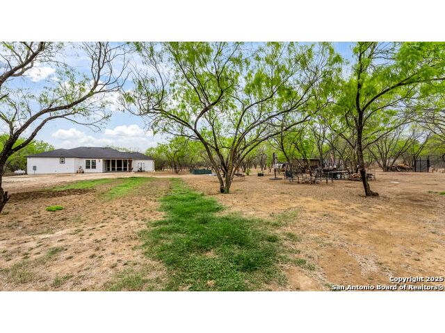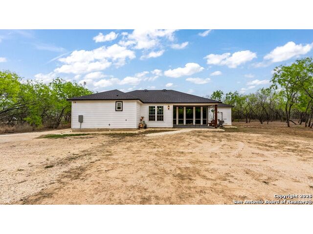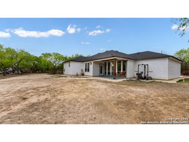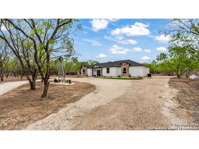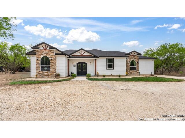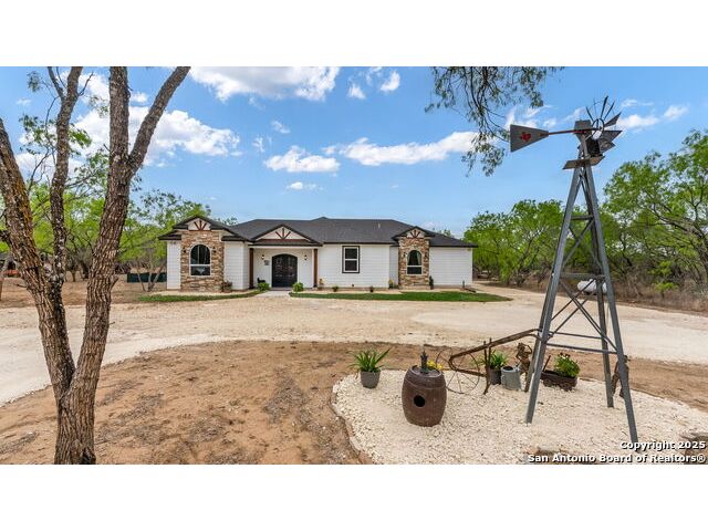 New Price!! 45K Discount! Seller concessions! Beautiful! 2100 sq. ft. newly constructed (2022) Ranch Style home in a 10.35-acre tract of land. 3 Bedroom, 2.5-bathroom open floor plan with tons of upgrades! Custom kitchen includes commercial gas stove range, custom cabinets, granite countertops, pot filler, and a huge walk-in pantry. This gorgeous open floor plan with huge picture windows in living room capture the picturesque outdoors and brings it into the home. Master bedroom with spacious walk-in closet. Bathrooms equipped with Bluetooth speakers. Lot is part of Bexar County, close to main roads, highways, schools and other local businesses. A few minutes to the Toyota Distribution Center and only 25 minutes from downtown San Antonio, Tx. Easy access to property, easement leads to main house. Land full of mature trees; it includes 4 chicken coops, an outdoor shed, a dog pin, a deerblind and a feeder. Property can be used for recreational hunting. No restrictions, no city taxes.