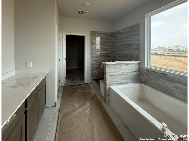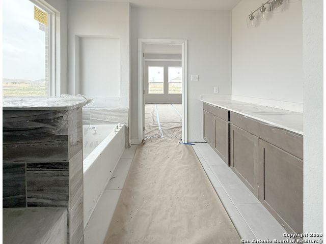 Charming one story home with gourmet kitchen featuring quartz countertops, upgraded cabinets, and a pantry. Open and spacious family room with large windows that look out onto the backyard. No direct back neighbors. Secluded primary suite features a private bath with an oversized shower, garden tub, double vanities, and a walk-in closet. Two secondary bedrooms with a shared bath. Covered patio ideal for outdoor relaxation. Full landscaping package with a sprinkler system.